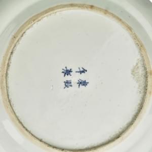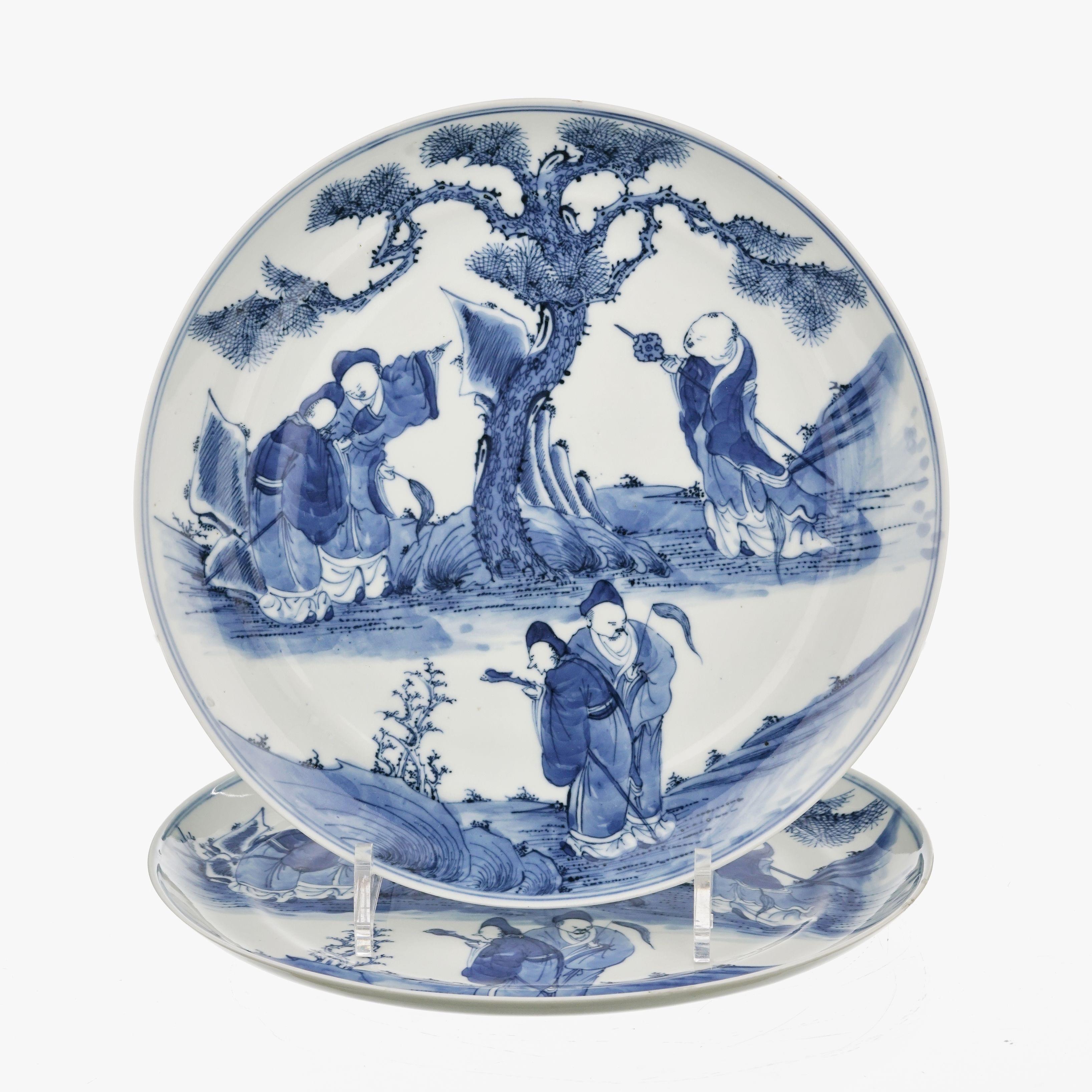 Porcelaine bleu blanc à décor de personnages sous un pin, D 24 cm