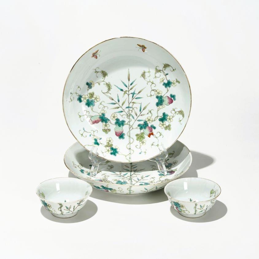 12. Paire d'assiettes et paire de bols famille verte, Chine, marque et période Guangxu (1875-1908)
