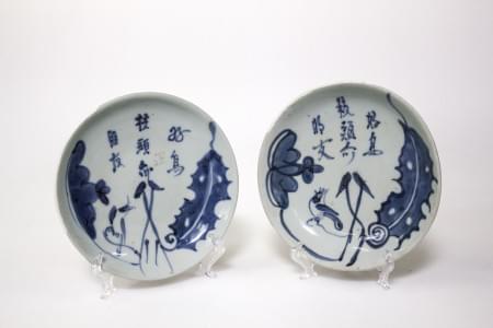 Trois sous-verre figurés en diorama et un sur socle, l'un compor...