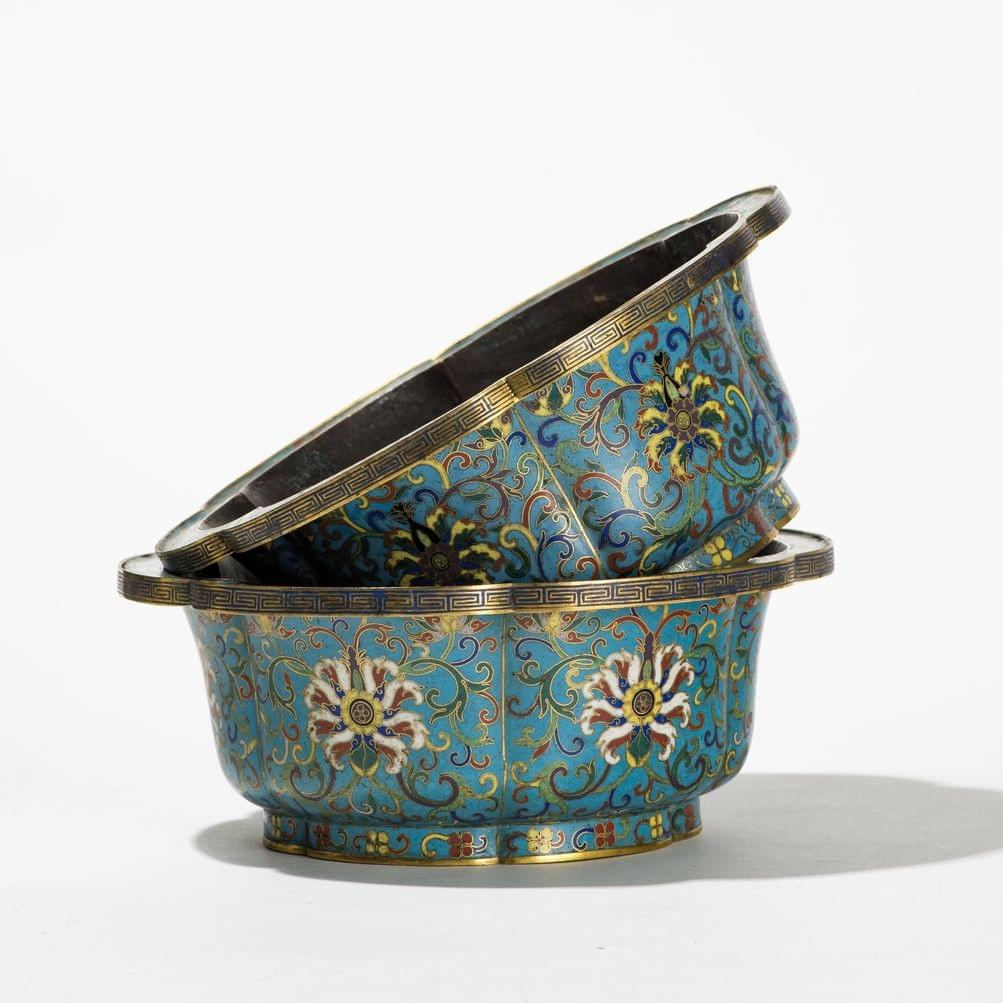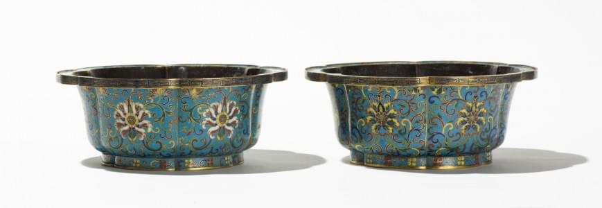 808. Paire de bassins polylobés en émaux cloisonnés