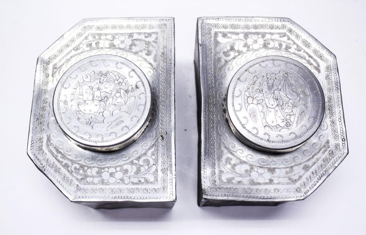 3316. Paire de boîtes à thé à décor de volutes et Chinois