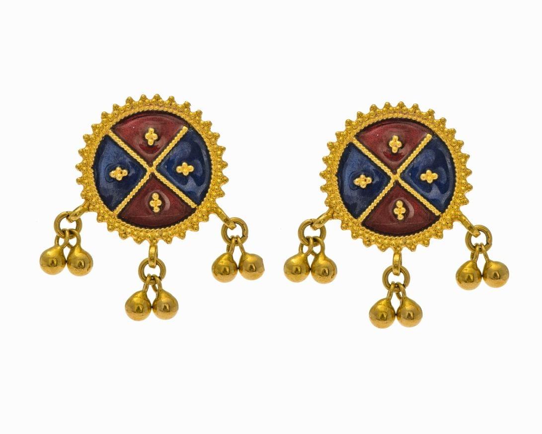 3067. Paire de boucles d'oreilles émaillées retenant des pampilles en or