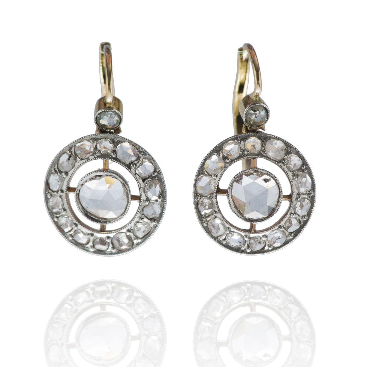 45. Paire de boucles d'oreilles rondes serties de diamants taille rose