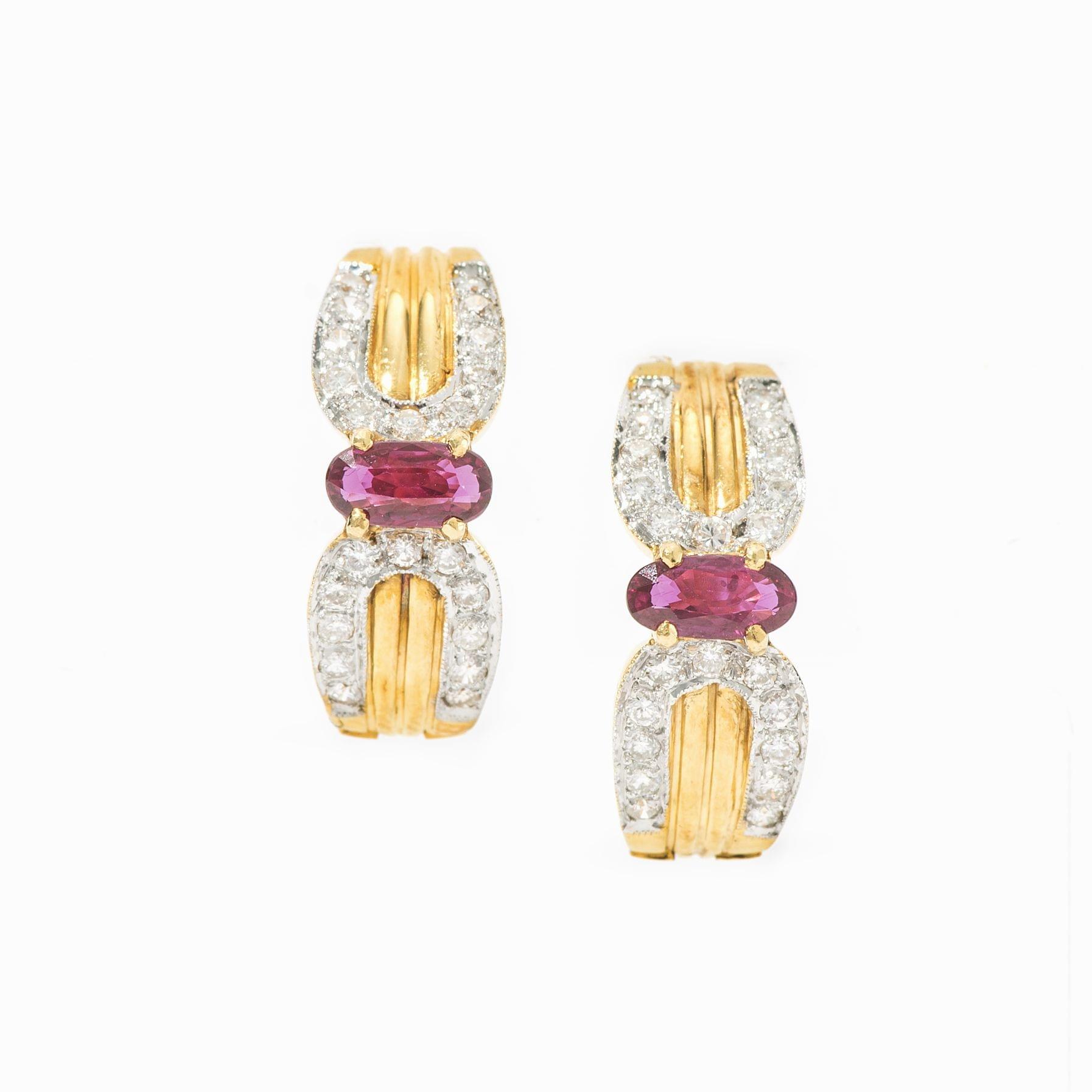 80. Paire de boucles d'oreilles sertie de rubis birmans et diamants