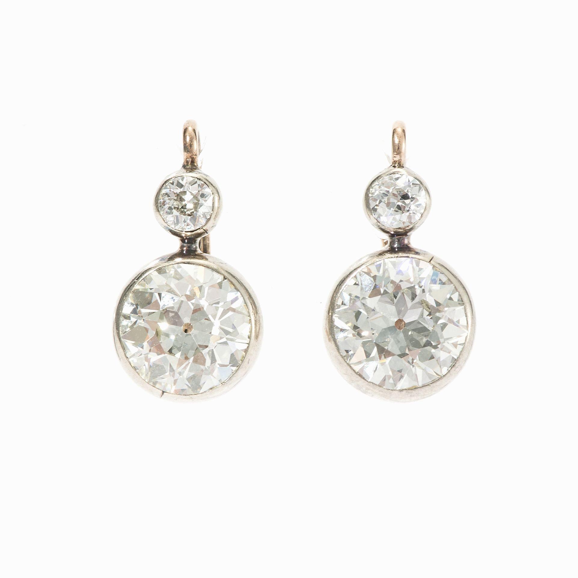 111. Paire de boucles d'oreilles serties de deux diamants demi taille superposés