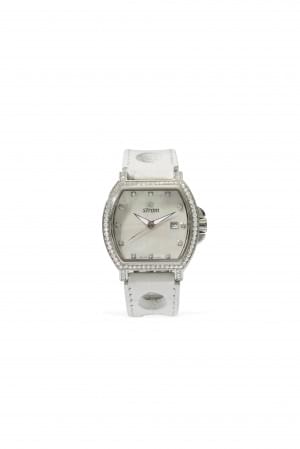 Cadran nacre, index diamanté, date à guichet à 3h, acier, 39x43...