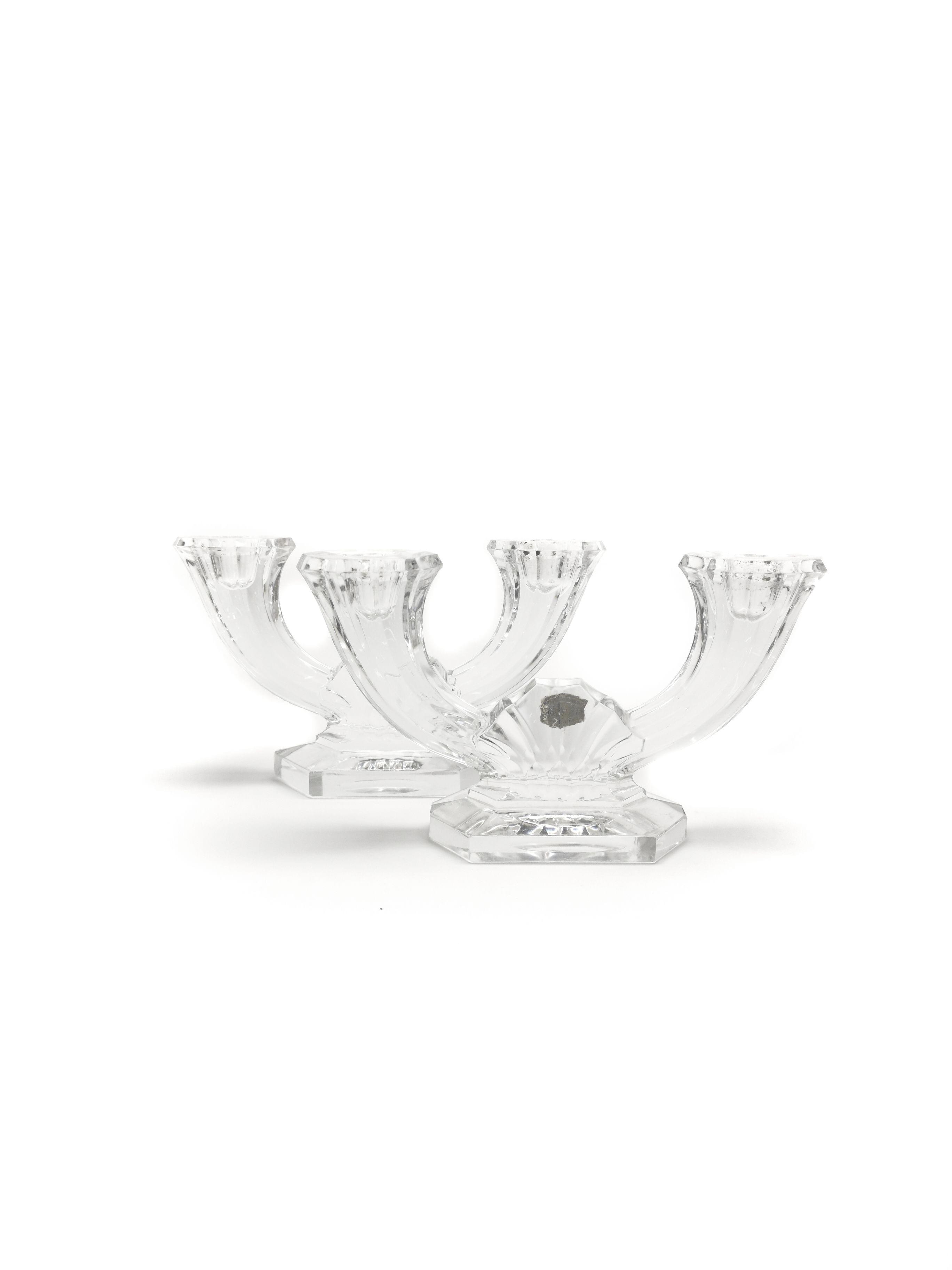 4388. Paire de bougeoirs Art déco à deux feux en corne d'abondance