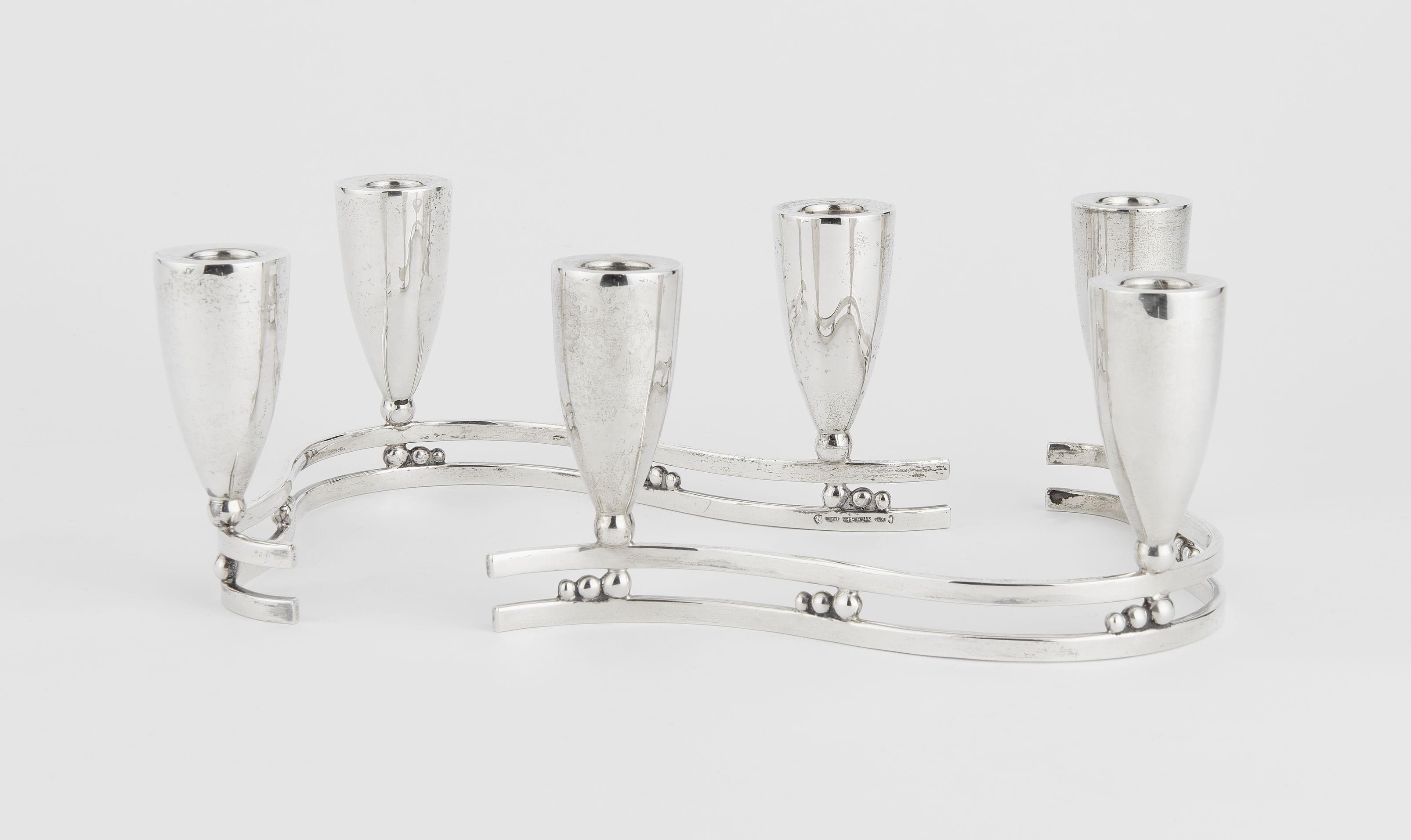 4673. Paire de bougeoirs modernistes à trois feux dans le style scandinave