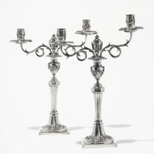 205. Paire de bougeoirs néoclassiques à décor de cannelures et guirlandes
