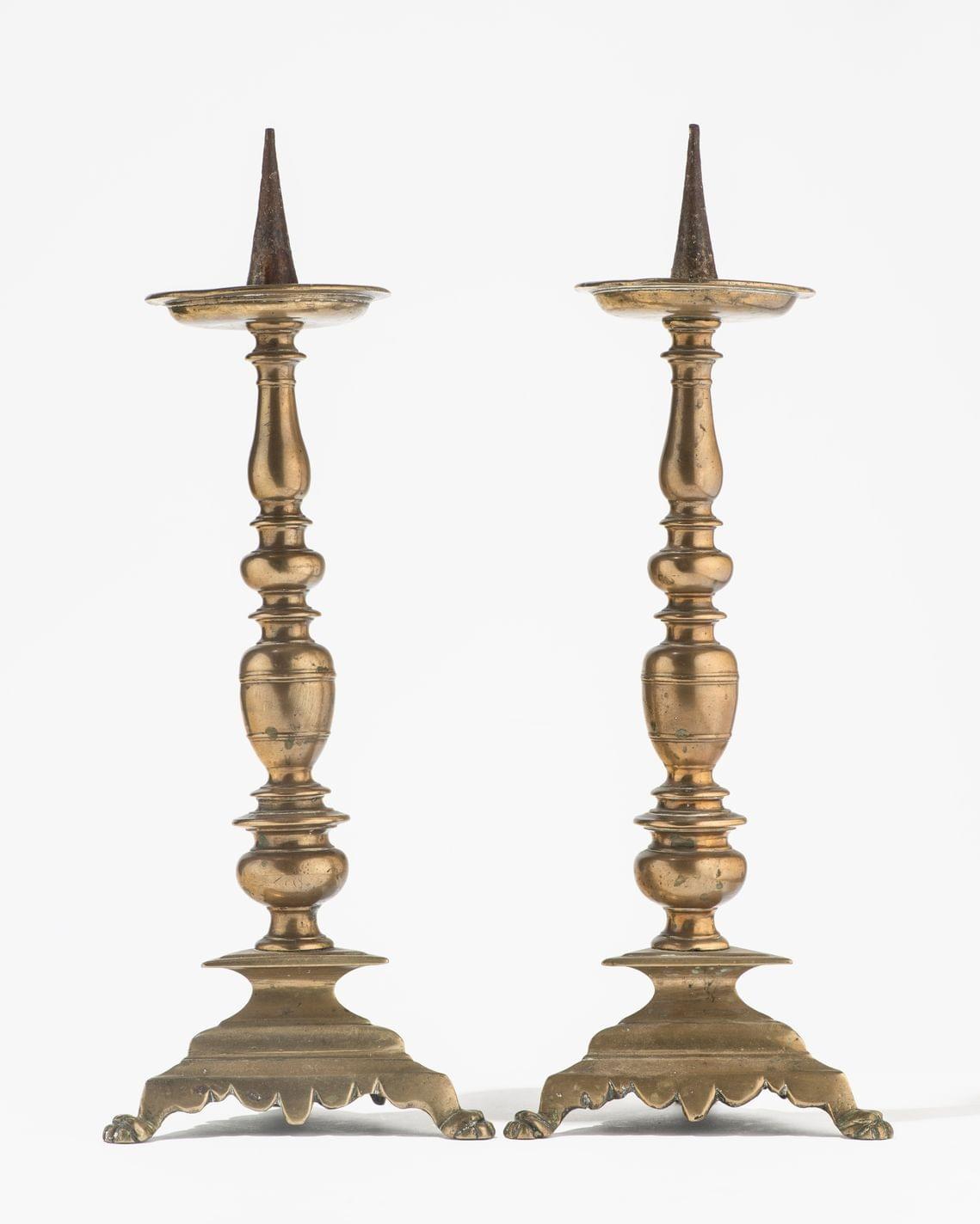 3670. Paire de bougeoirs tripodes
