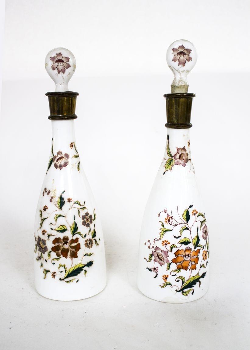 3344. Paire de bouteilles à décor de fleurs orange et mauves