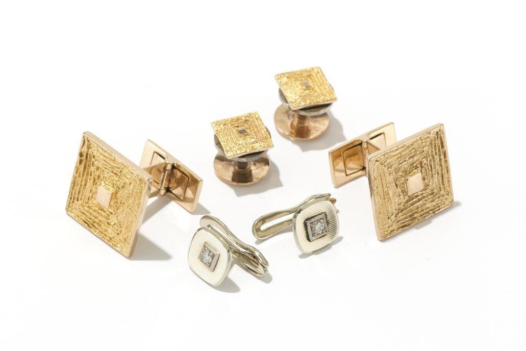 3225. Paire de boutons de manchette et deux boutons de plastrons assortis