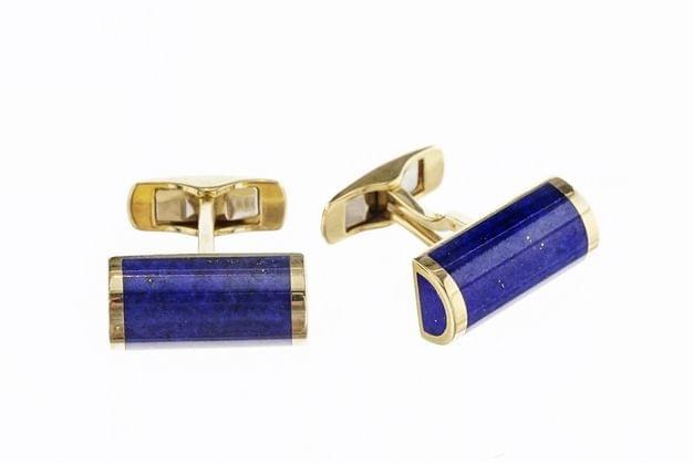 226. Paire de boutons de manchette rectangulaires sertis de lapis-lazuli