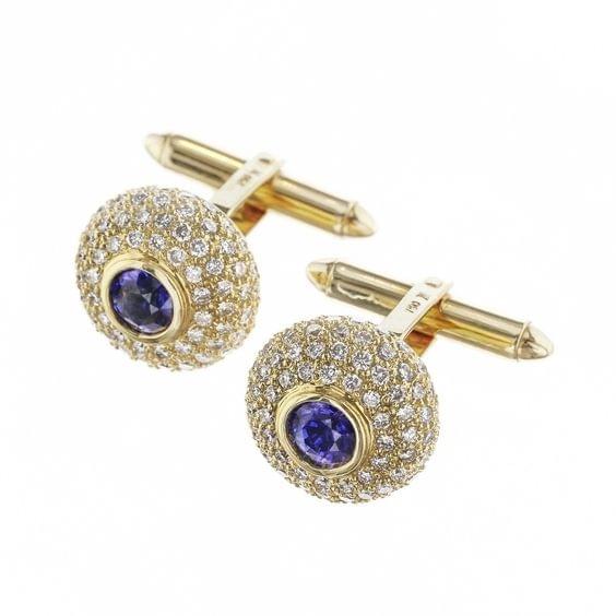227. Paire de boutons de manchette ronds sertis de saphirs (env. 1.5 ct) entourés de diamants (env. 3.5 ct)