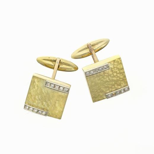 42. Paire de boutons de manchettes carrés satinés sertis de diamants...