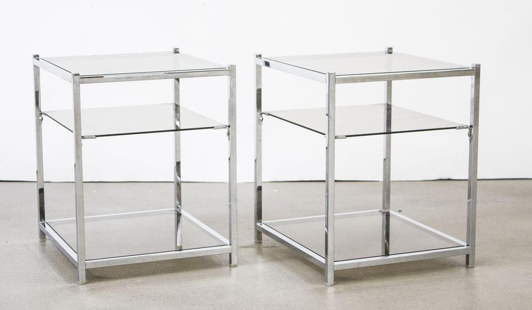Métal chromé et verre fumé, circa 1980, 50x40x40 cm