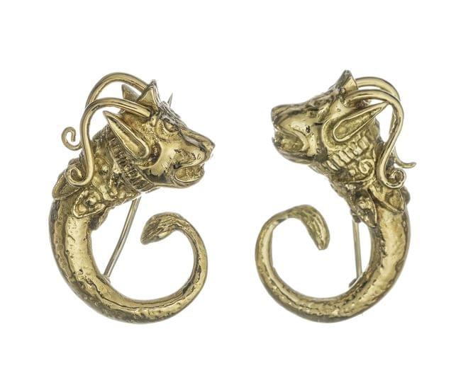 329. Paire de broches à motif de têtes de chimère dans le style antique