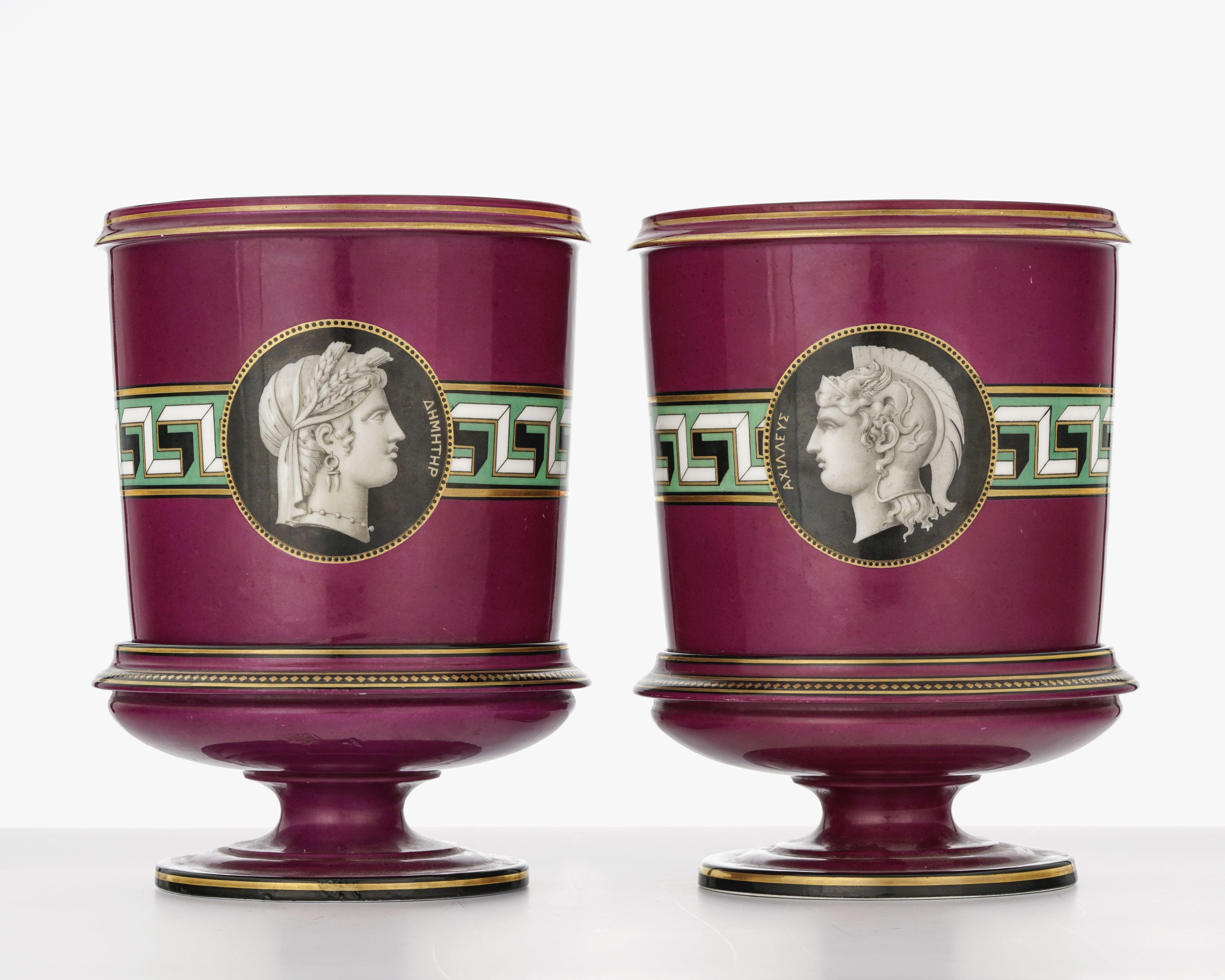 Trois sous-verre figurés en diorama et un sur socle, l'un compor...