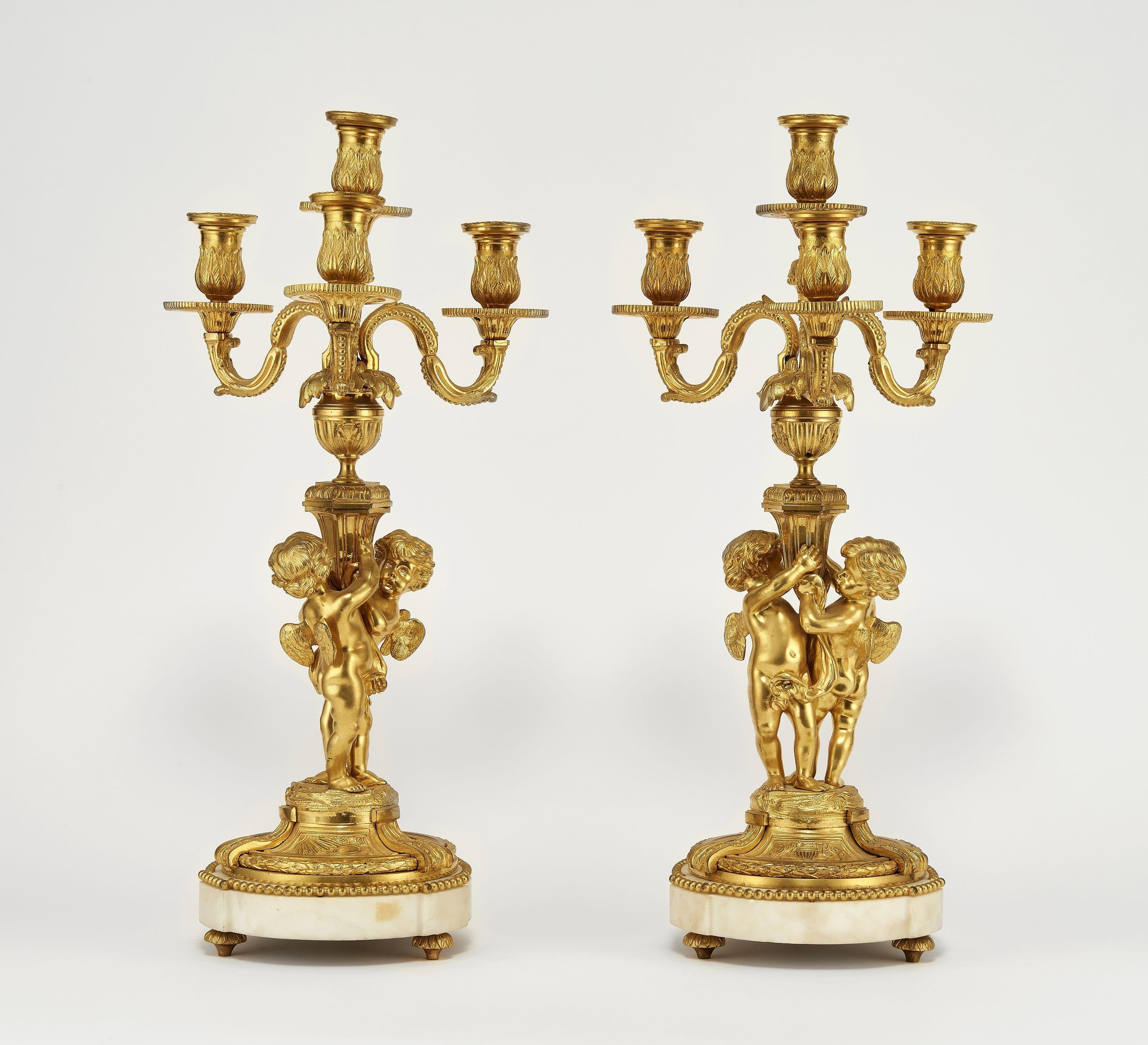 Cadrans émaillés blancs, aiguilles dorées, chiffres romains noir...