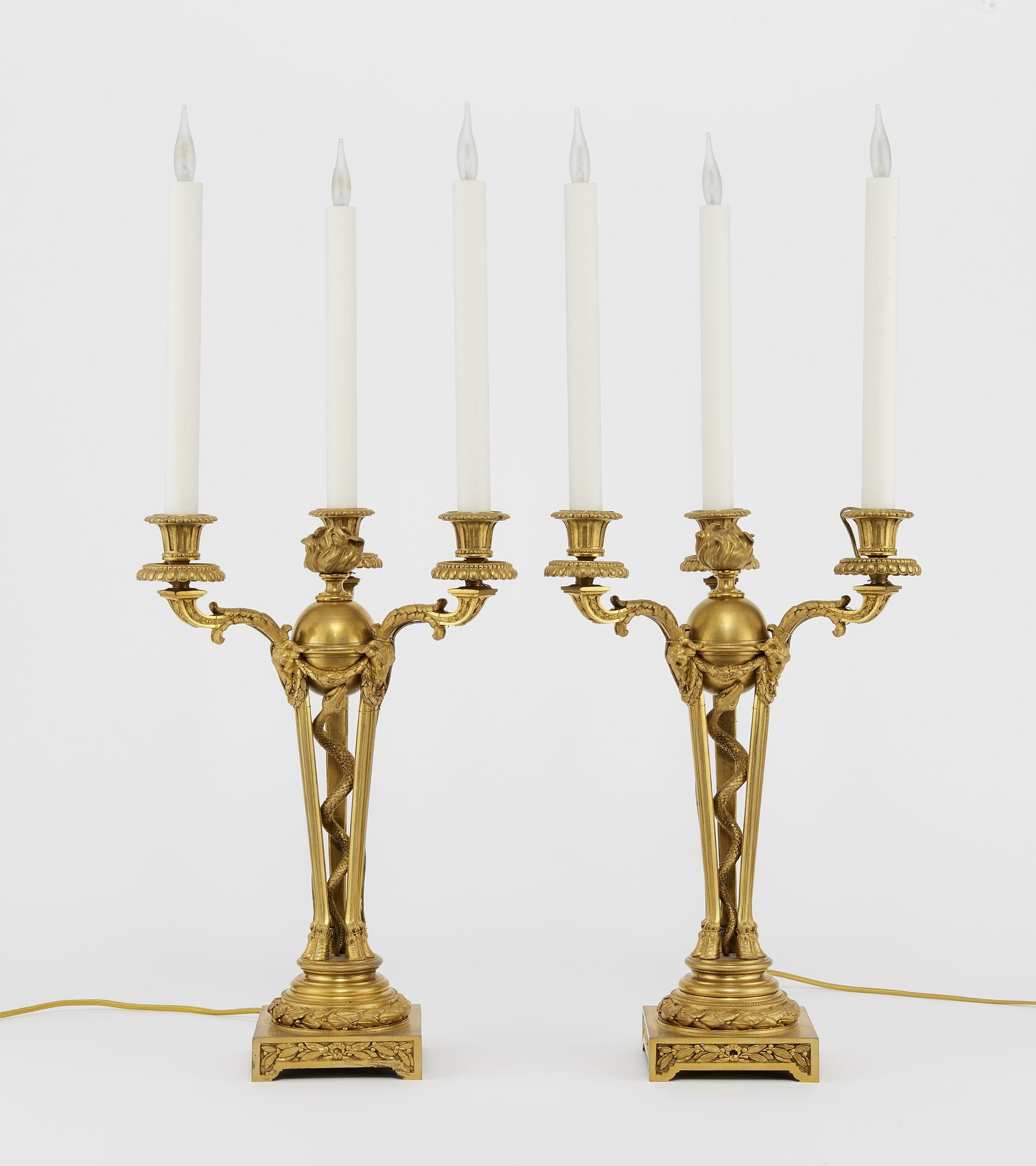 502. Paire de candélabres à trois lumières de style Louis XVI