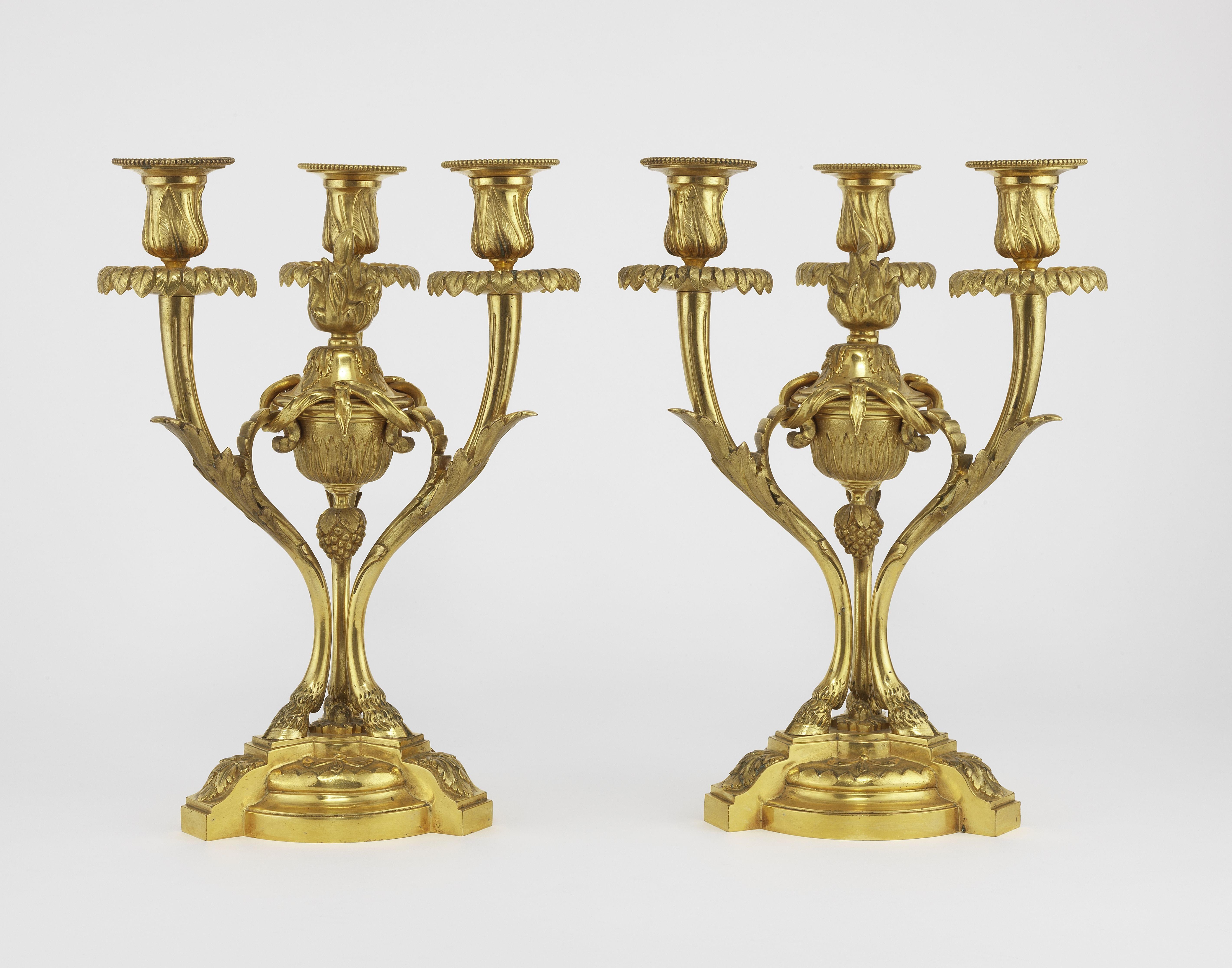 4214. Paire de candélabres à trois lumières de style Louis XVI