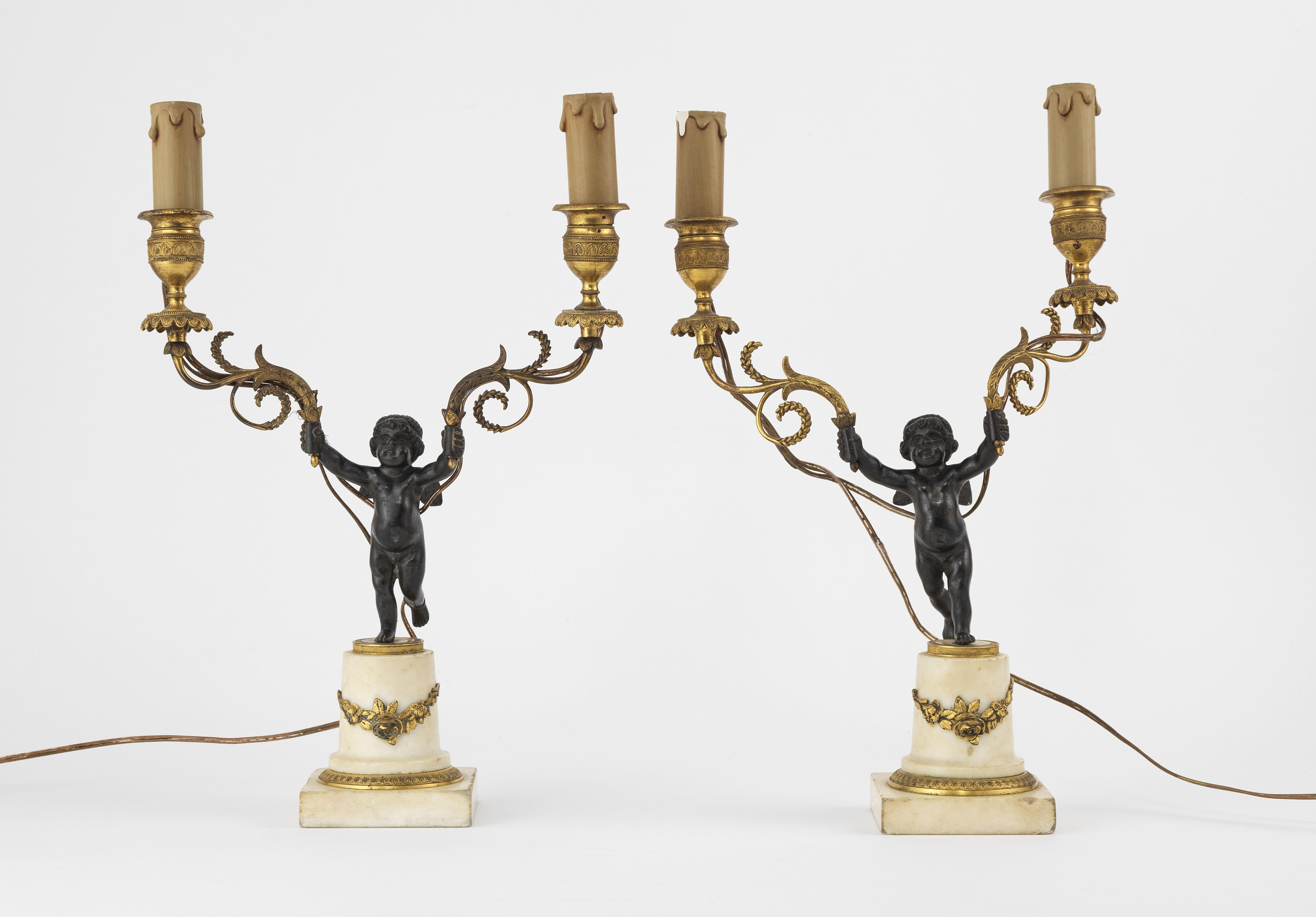 4107. Paire de candélabres au putto tenant deux bras de lumière, fin XIXe s