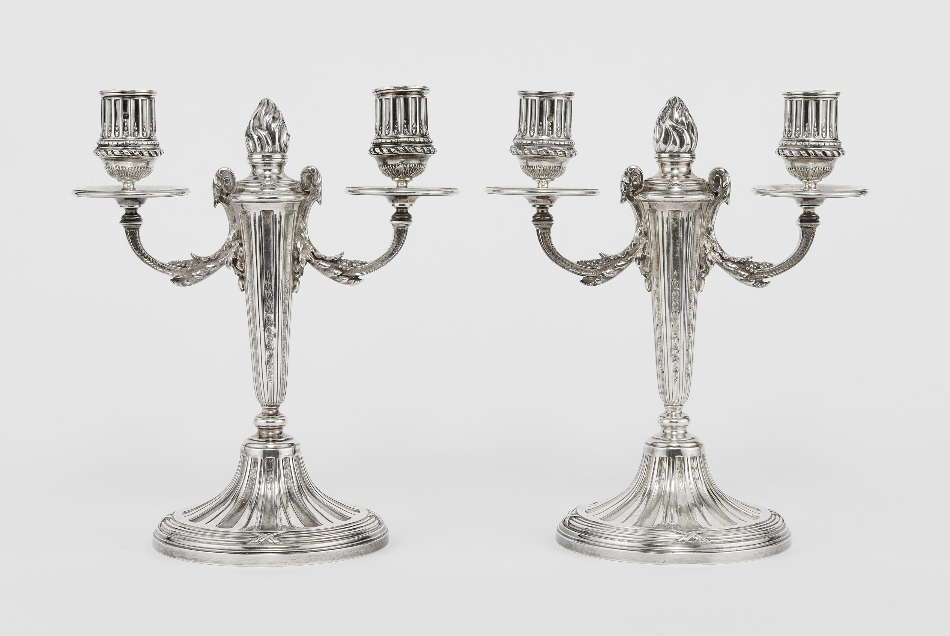 387. Paire de candélabres de style Louis XVI à deux feux,