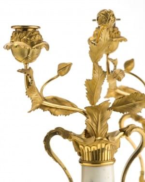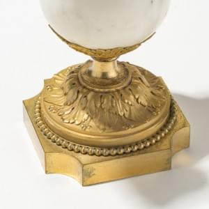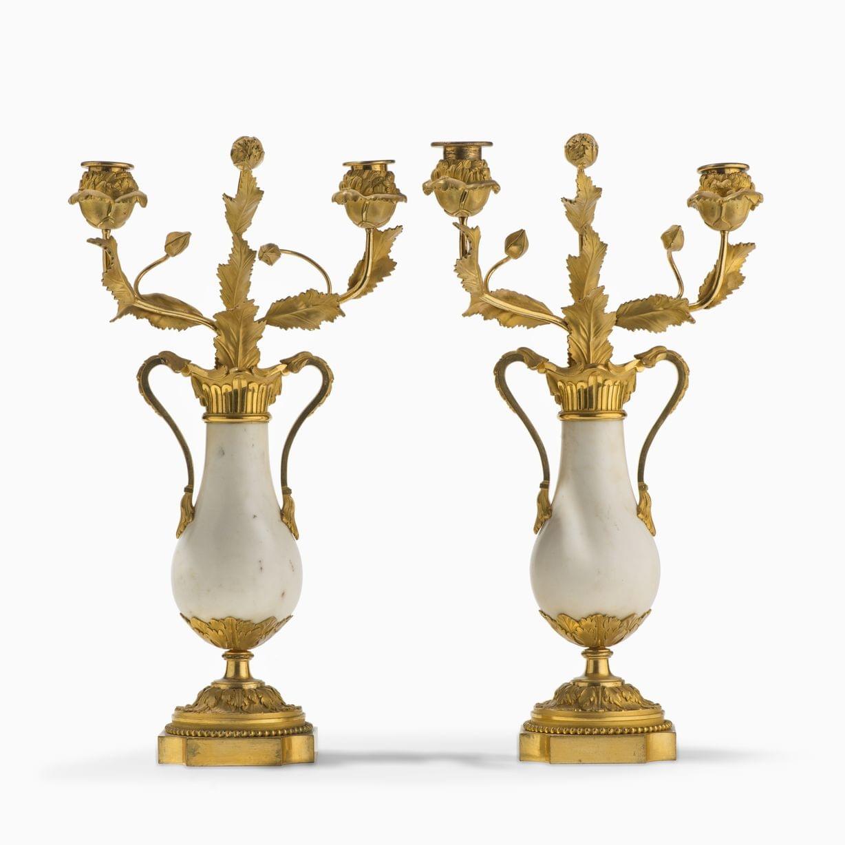 Formés d'un vase balustre à décor de rameaux fleuris, marbre blanc et bronze doré, H 38 cm