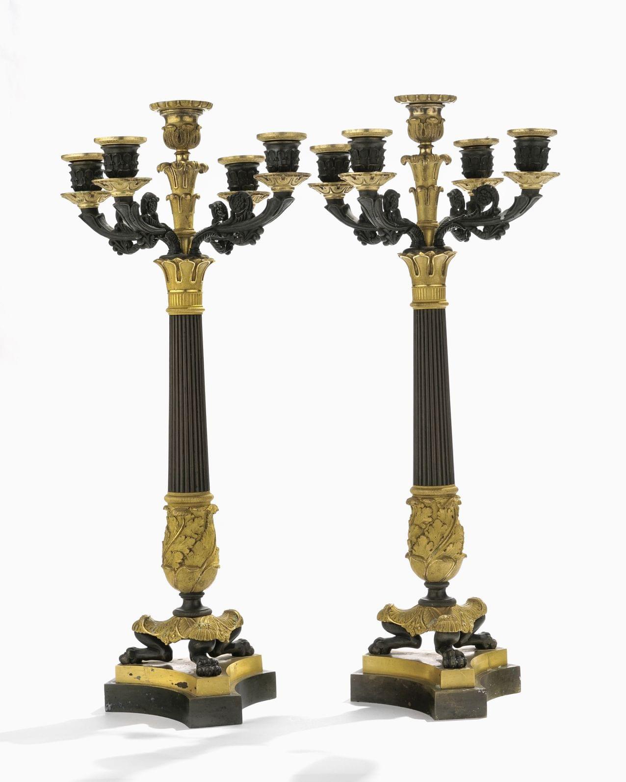 638. Paire de candélabres d'époque Restauration à cinq lumières