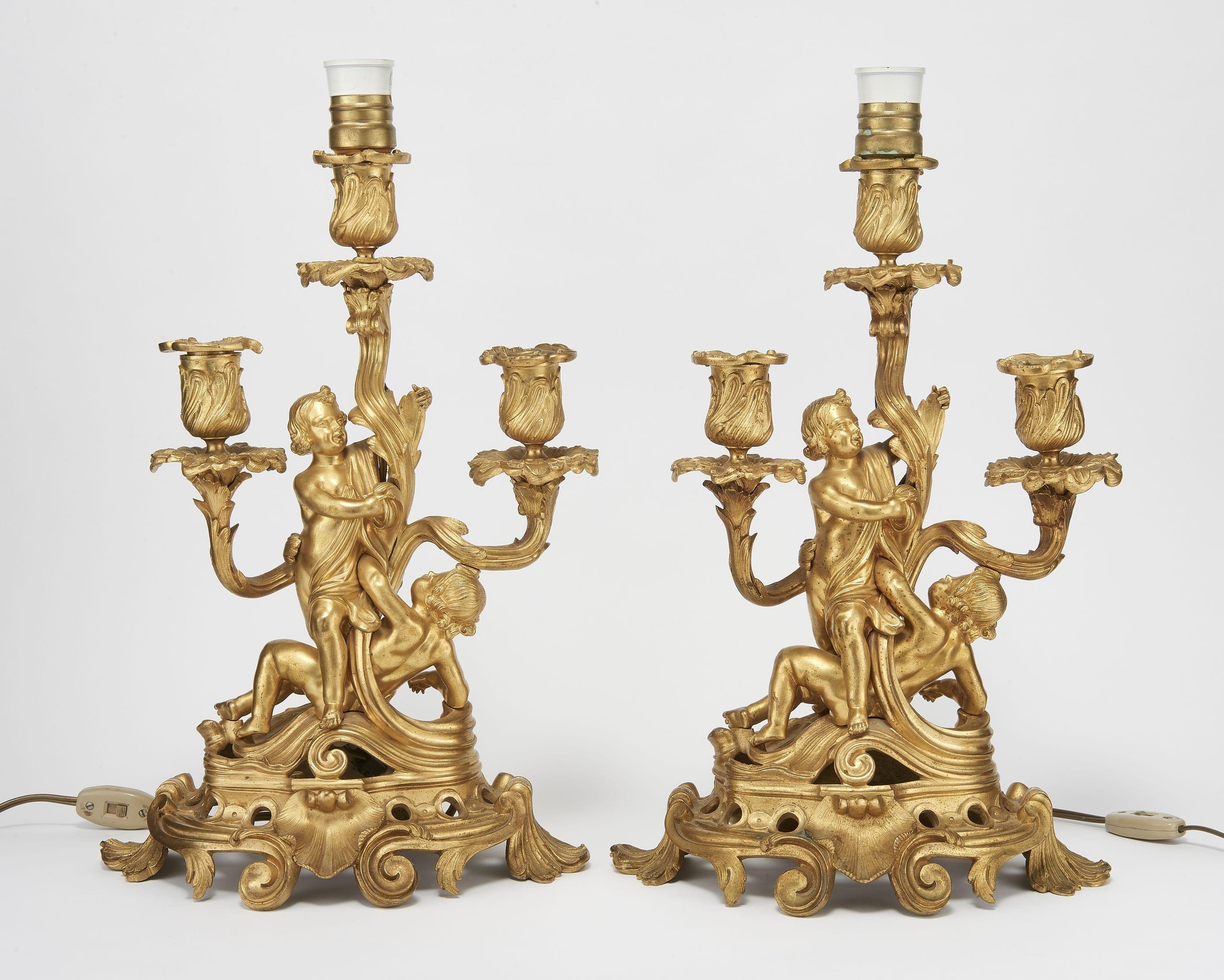 Laiton, H 37 et 38 cm