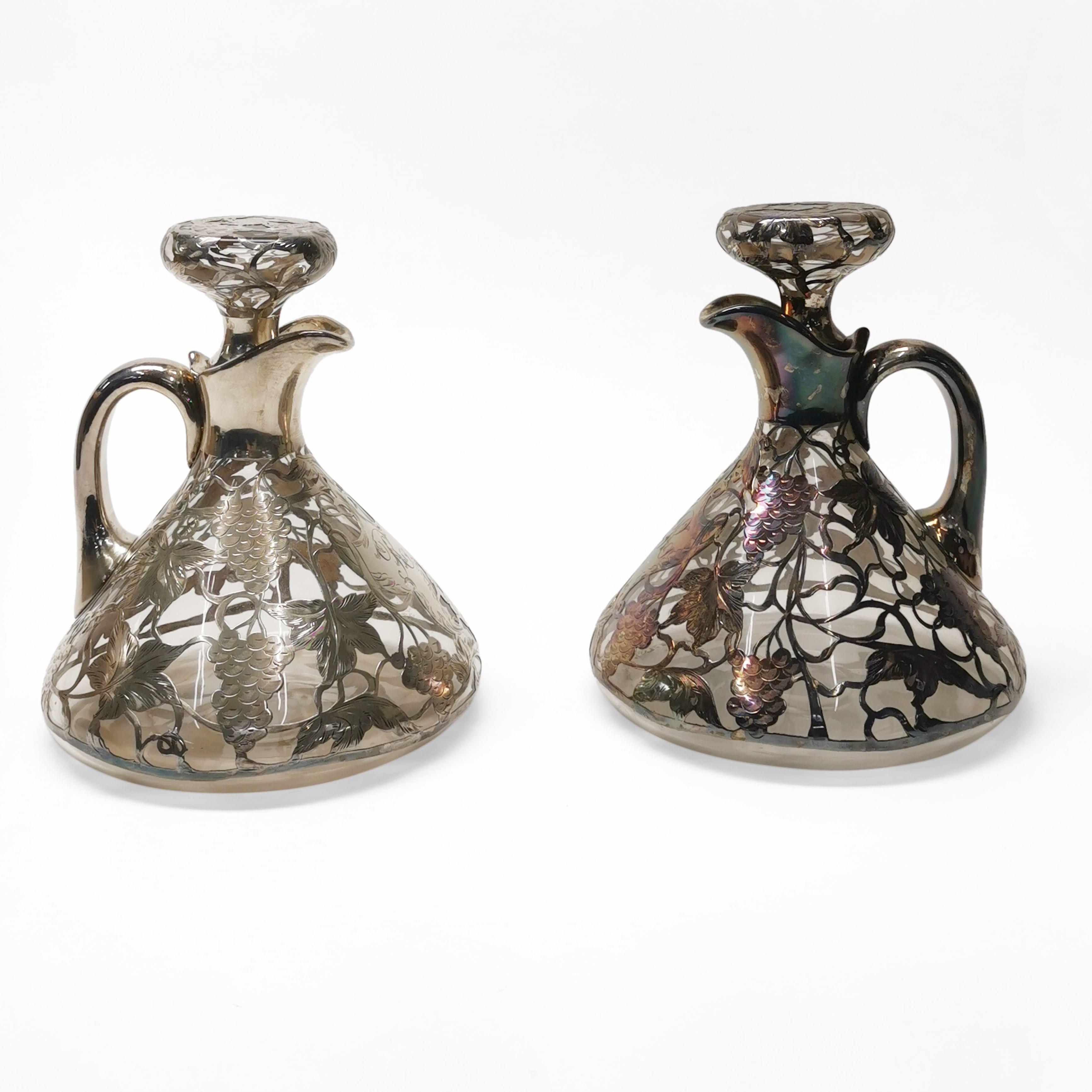 3803. Paire de carafes à motif appliqué de pampres de vigne