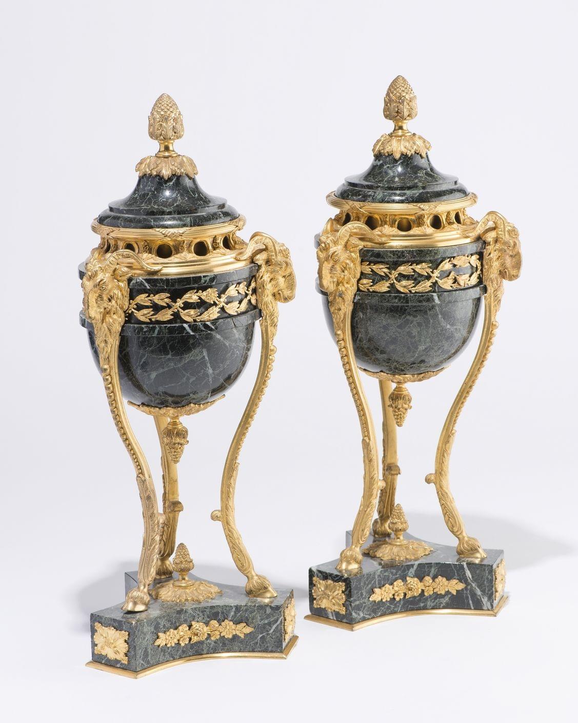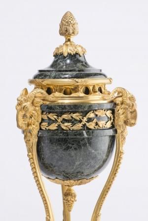 Marbre vert, bronze doré à décor de boucs et pomme de pin, XIXe s, H 49 cm
