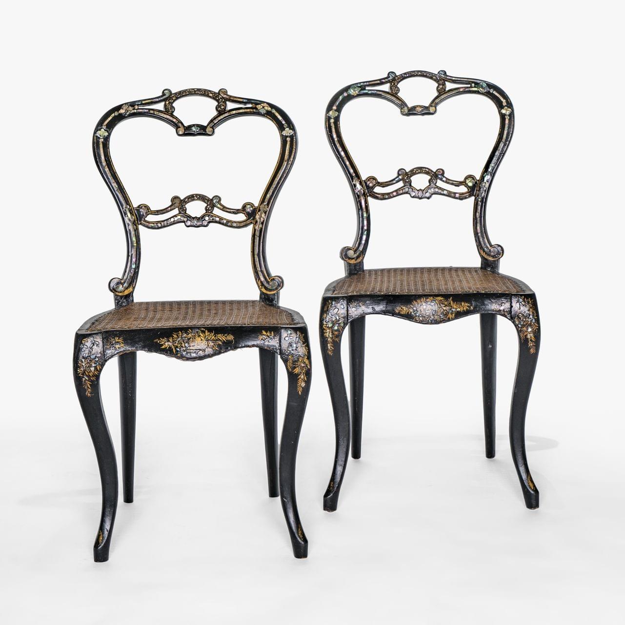 A décor de feuillage peint doré et marqueté de nacre, bois noirci, 84x42,5x39 cm