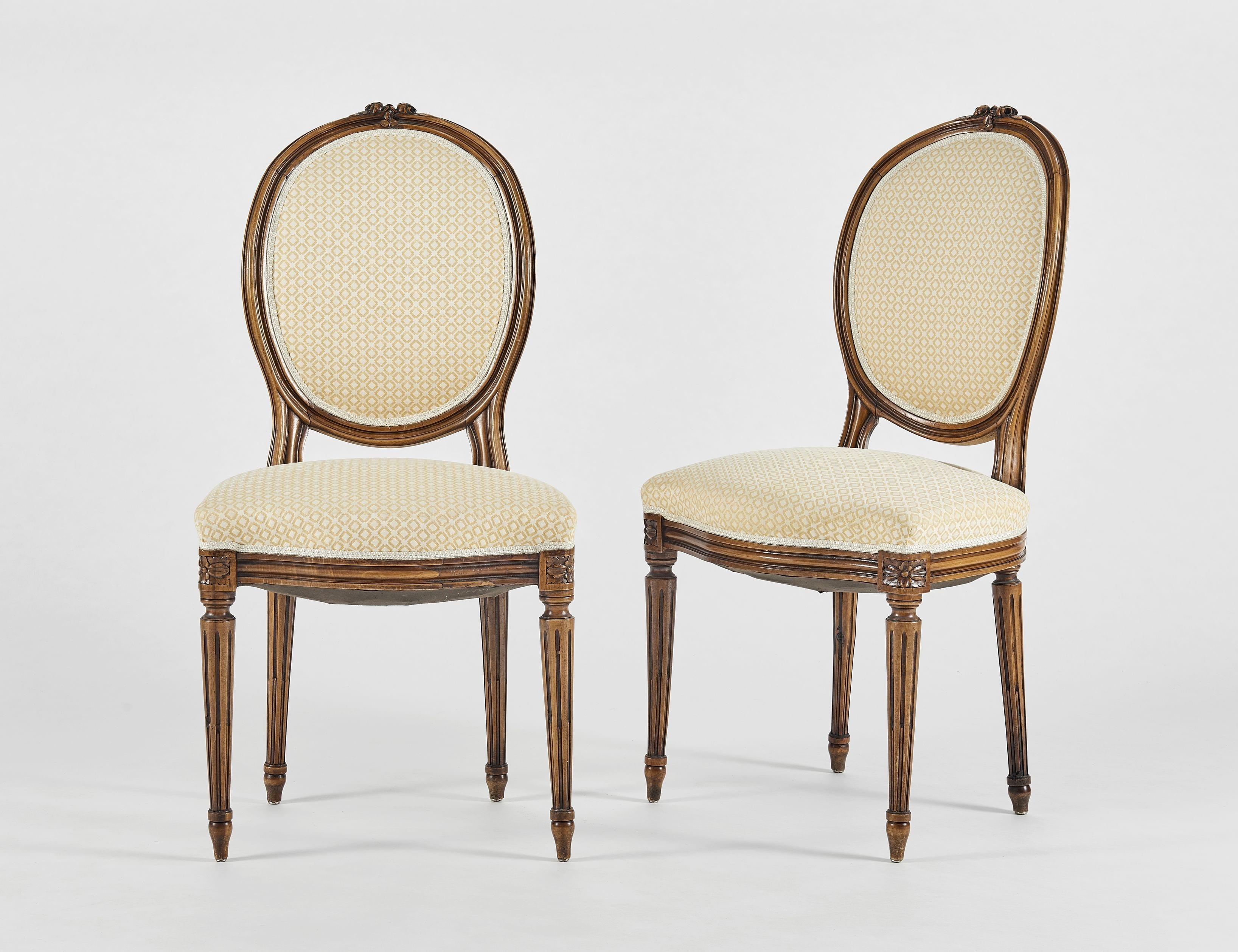 Dossier médaillon, bois au naturel, tissu crème. Provenance: collection Pernet-Villaverde