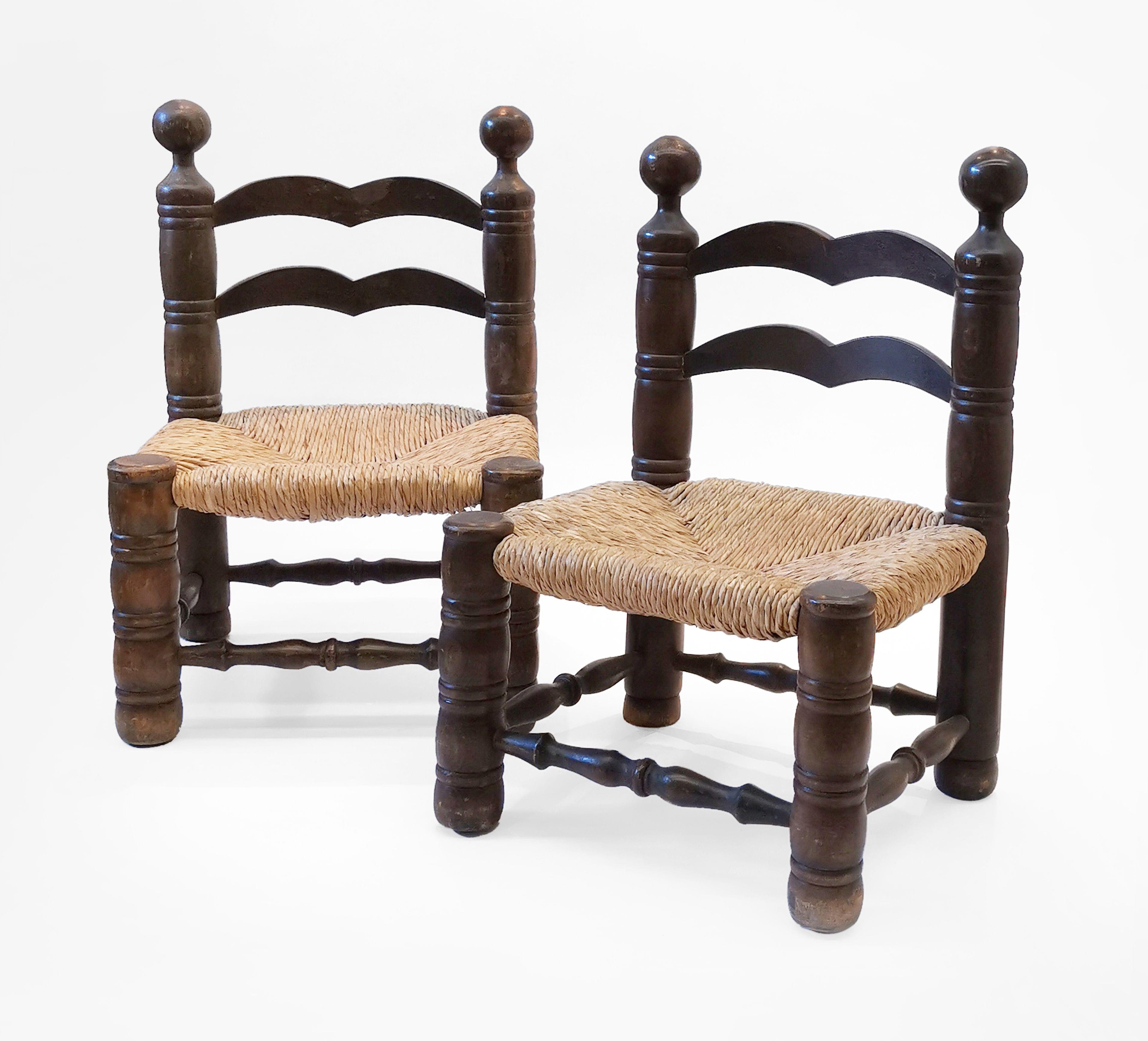 5477. Paire de chaises rustiques par Charles Dudouyt (1885-1946)