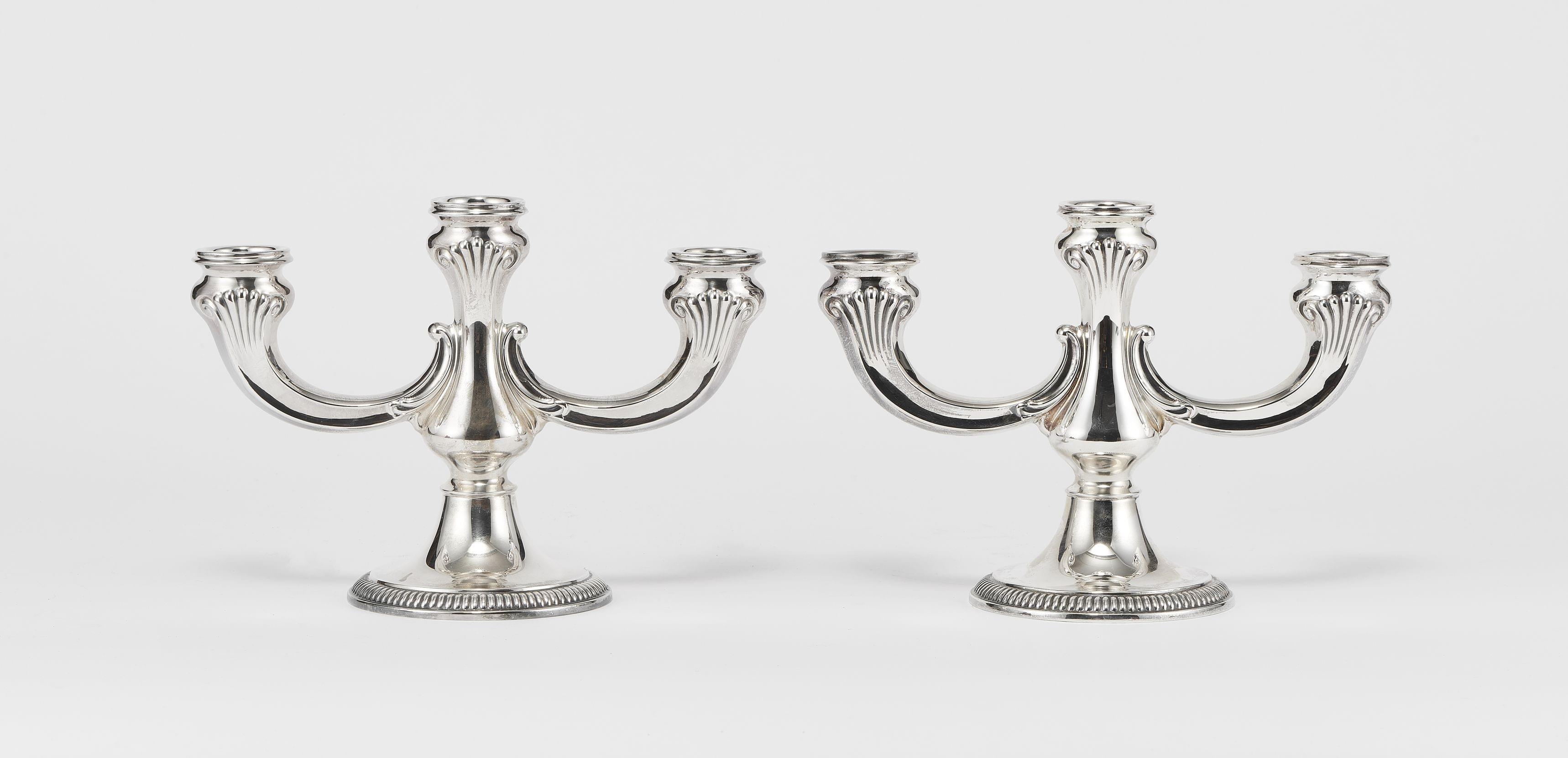 388. Paire de flambeaux balustres gravés d'armoiries comtales d'époqu...