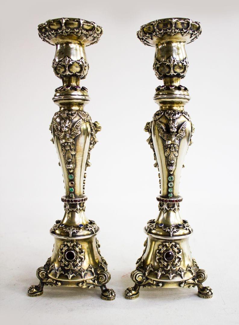 Décor de chimères et incrustation de verre taillé, argent, H 24 cm