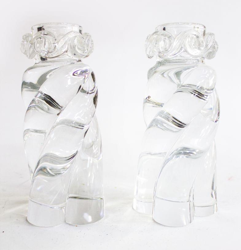 3140. Paire de chandeliers torses bagués de