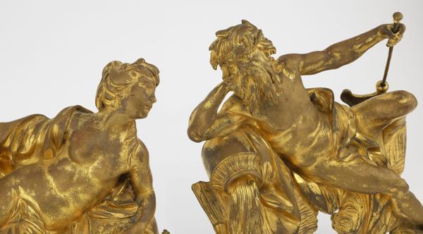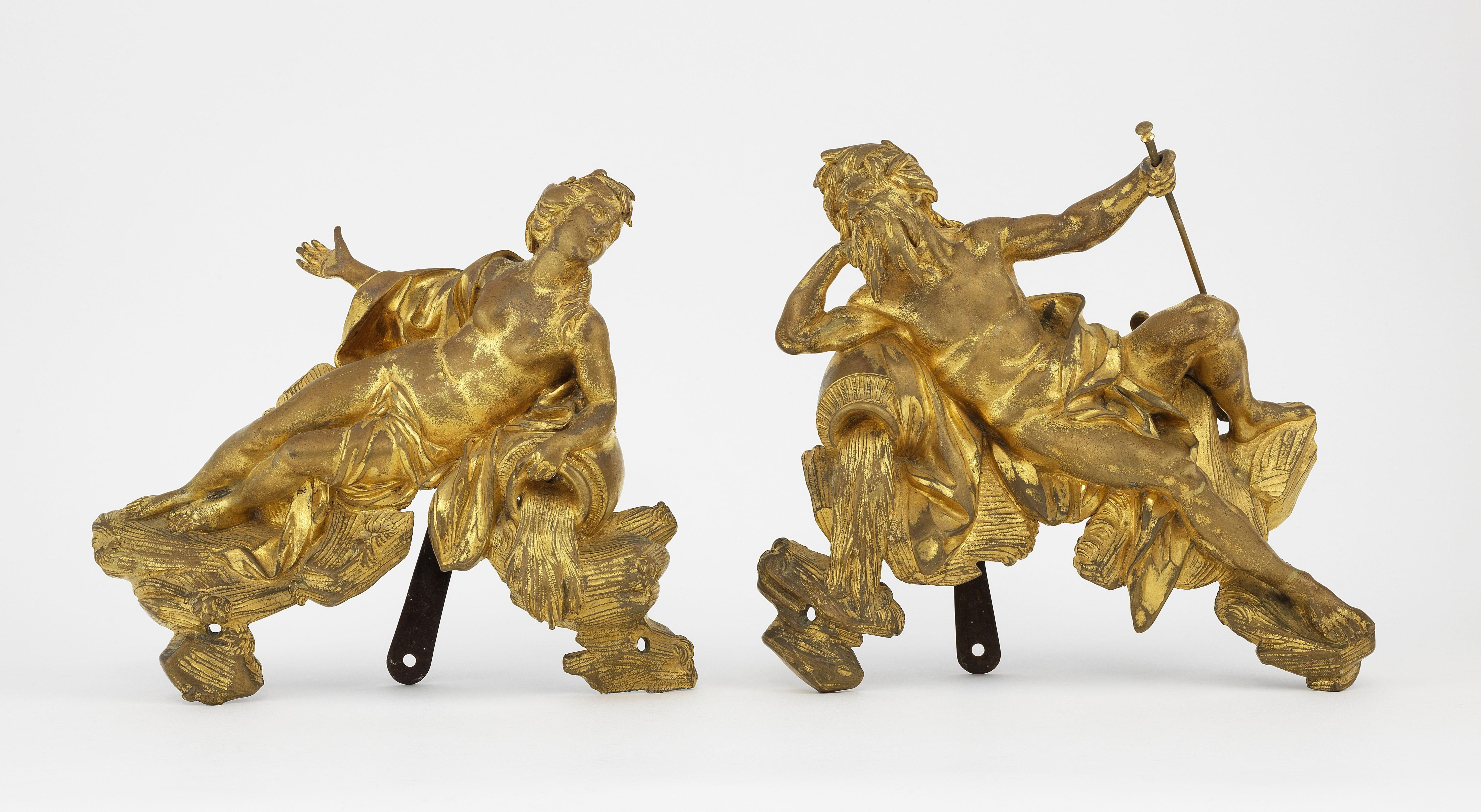 22. Paire de chenêts à décor de figures fluviales, XVIIIe s