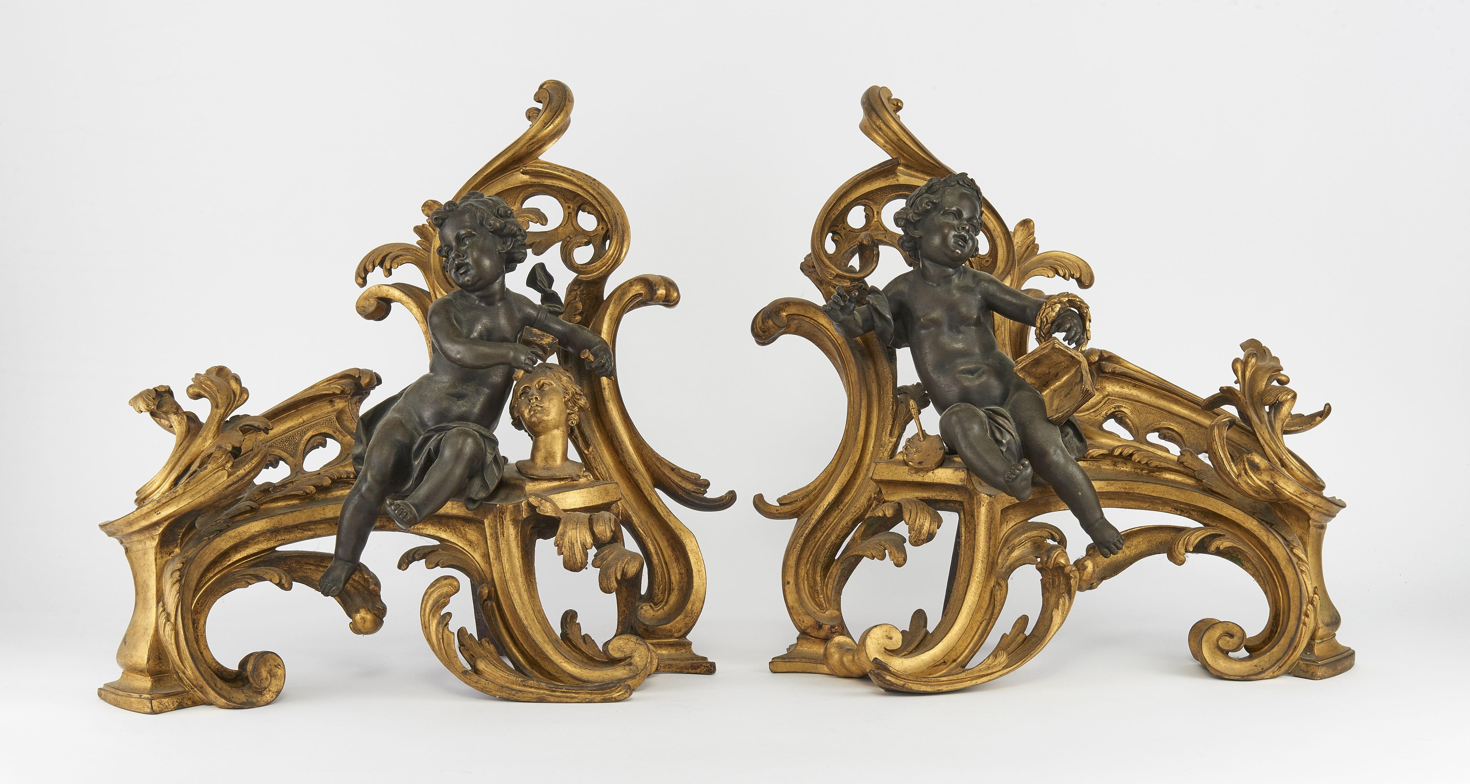 472. Paire de chenêts de style Louis XV, fin XIXe s