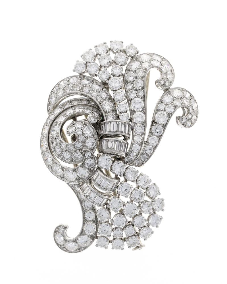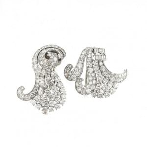 247. Paire de clips sertis de diamants taille brillant et baguette (env. 9 ct) pouvant se porter ensemble ou séparément