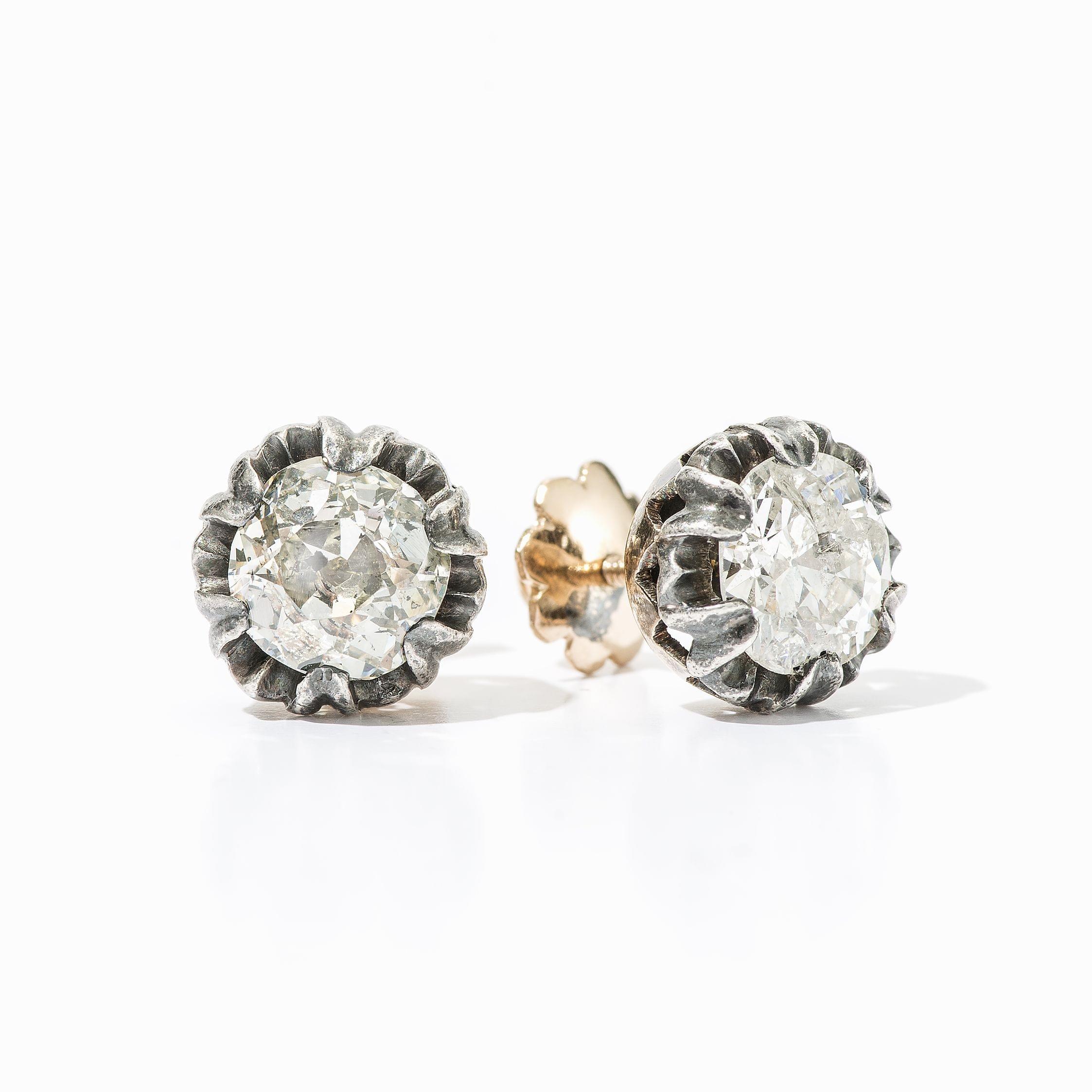 108. Paire de clous d'oreilles sertie de diamants taille ancienne