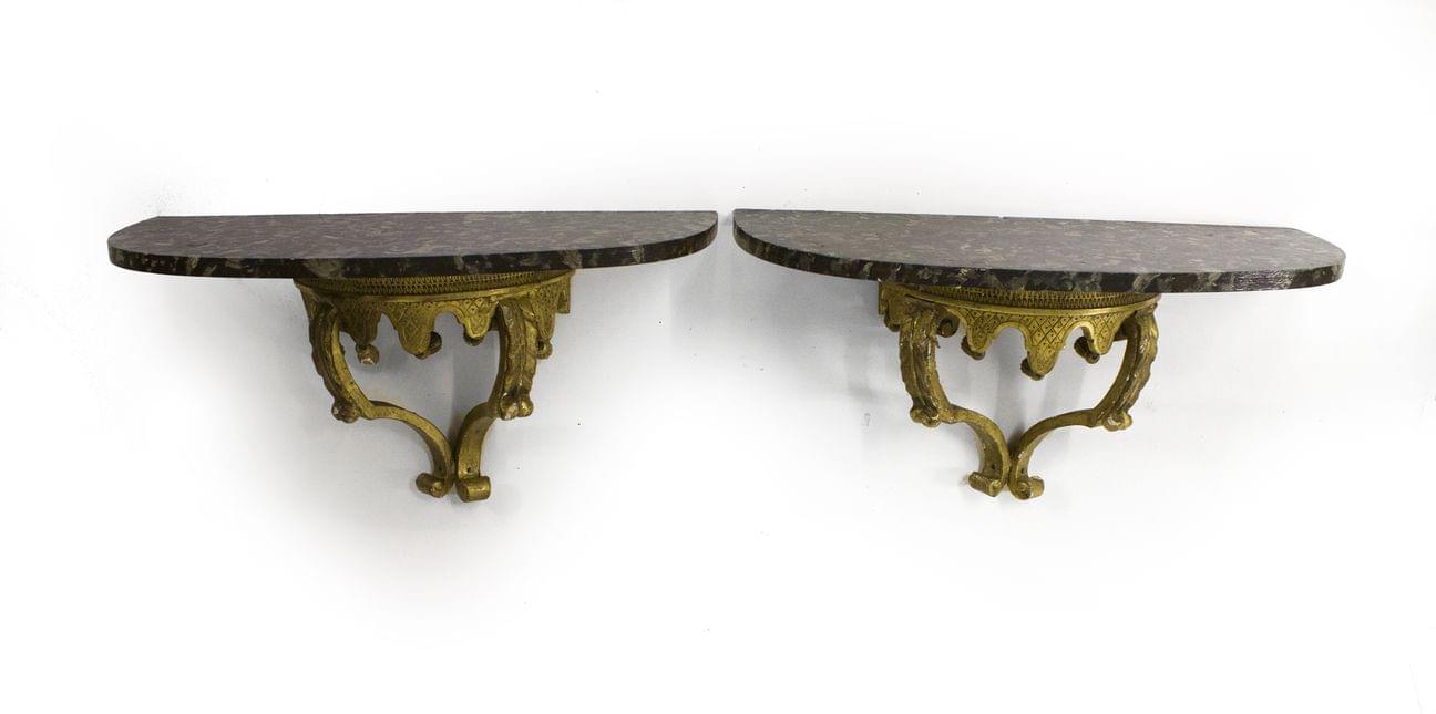 Bois sculpté peint faux marbre et doré, H 24 cm
