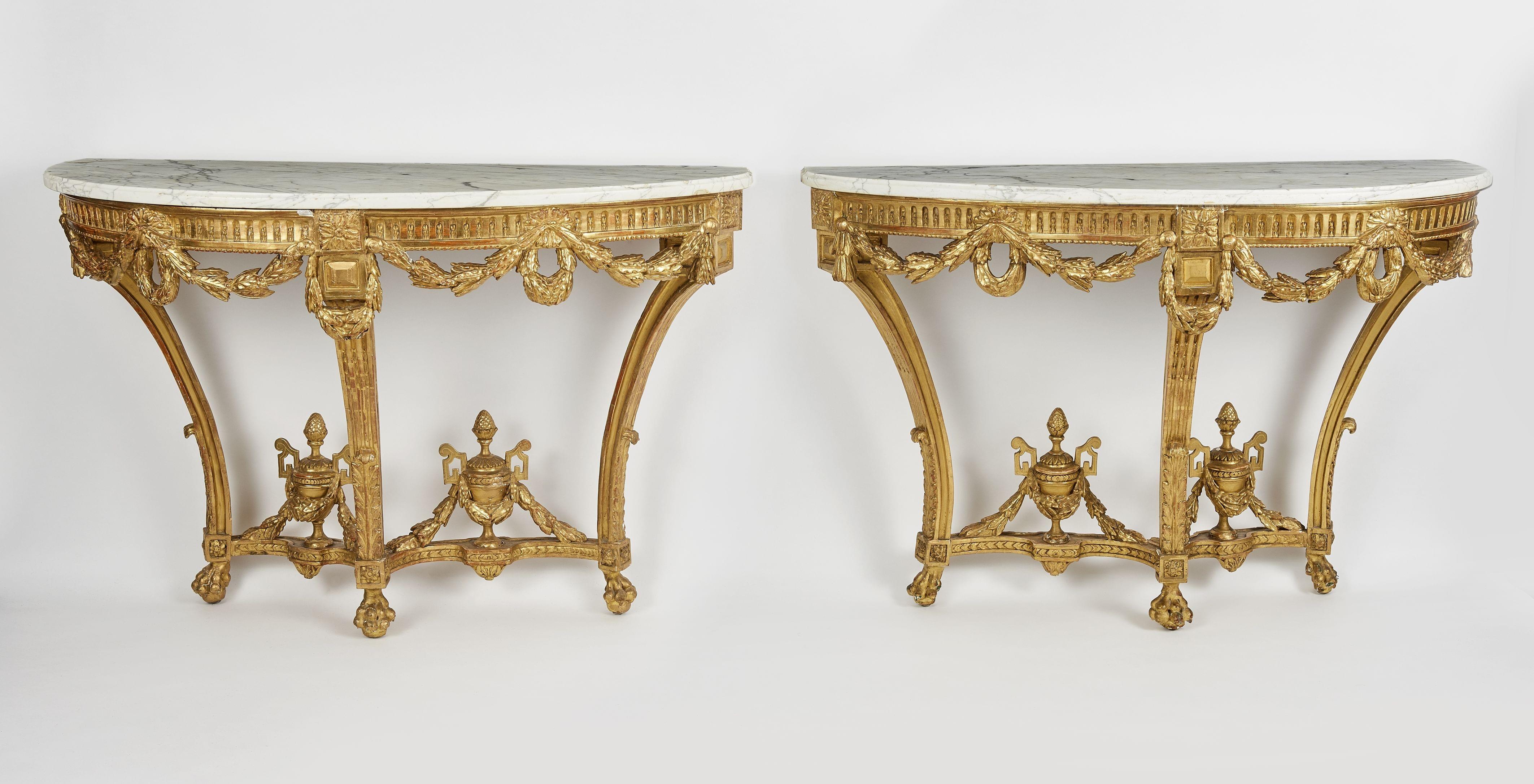 585. Paire de consoles en ellipse d'époque Louis XVI