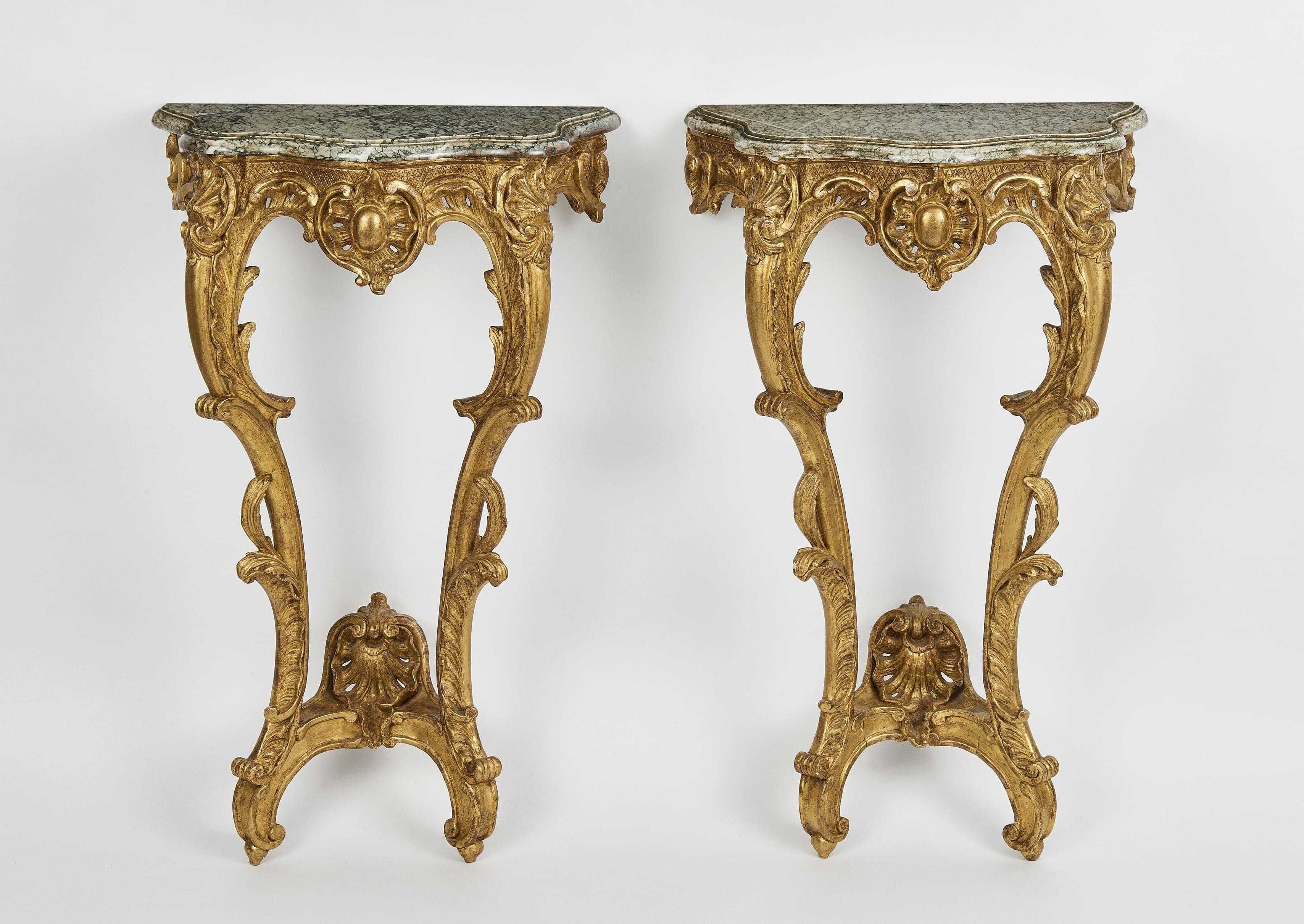Bois doré, marbre veiné bleu gris, 87x50x28 cm. Provenance: collection Pernet-Villaverde