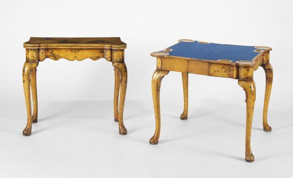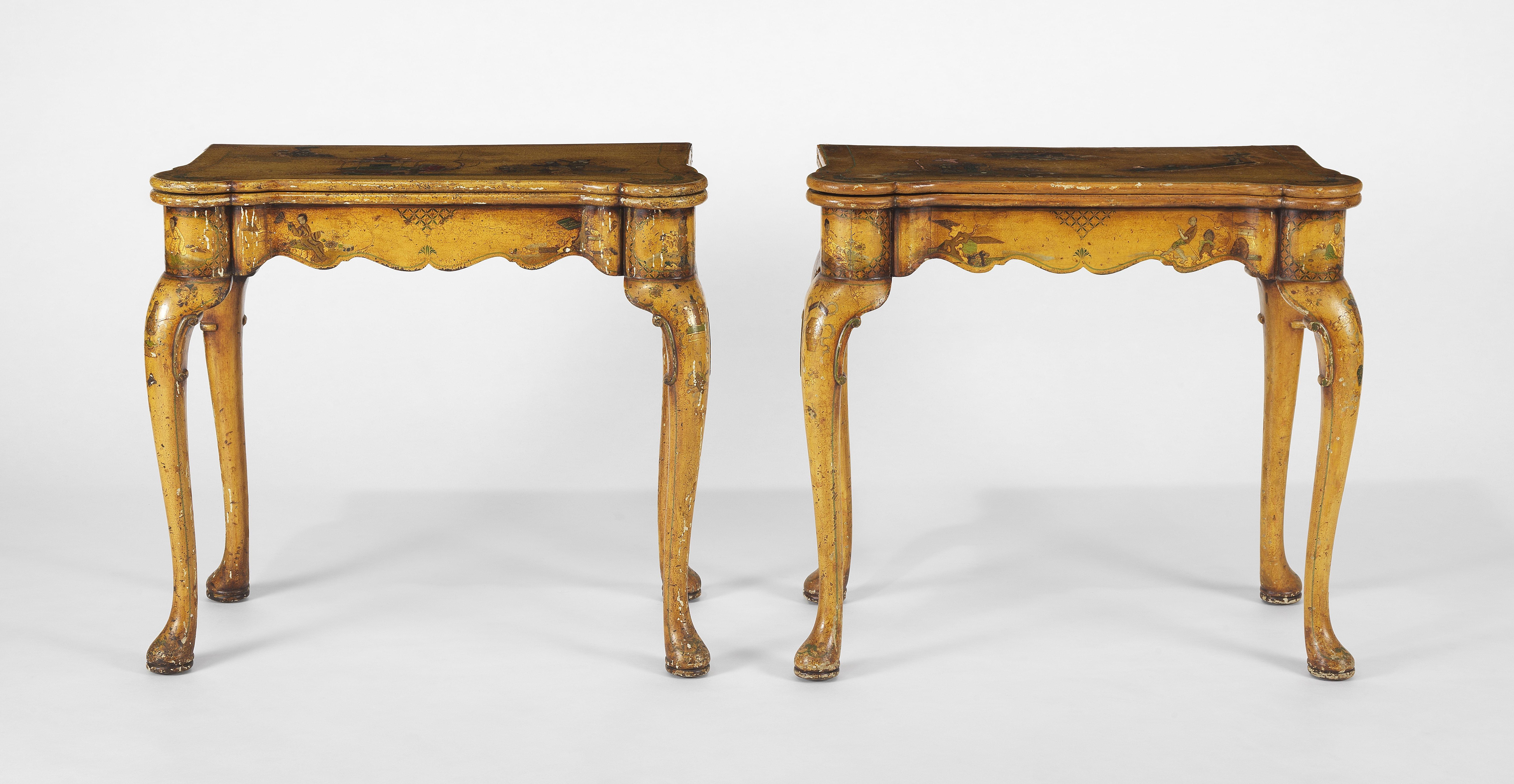 Bois laqué polychrome sur fond jaune à motifs au chinois, 74x80x40 cm