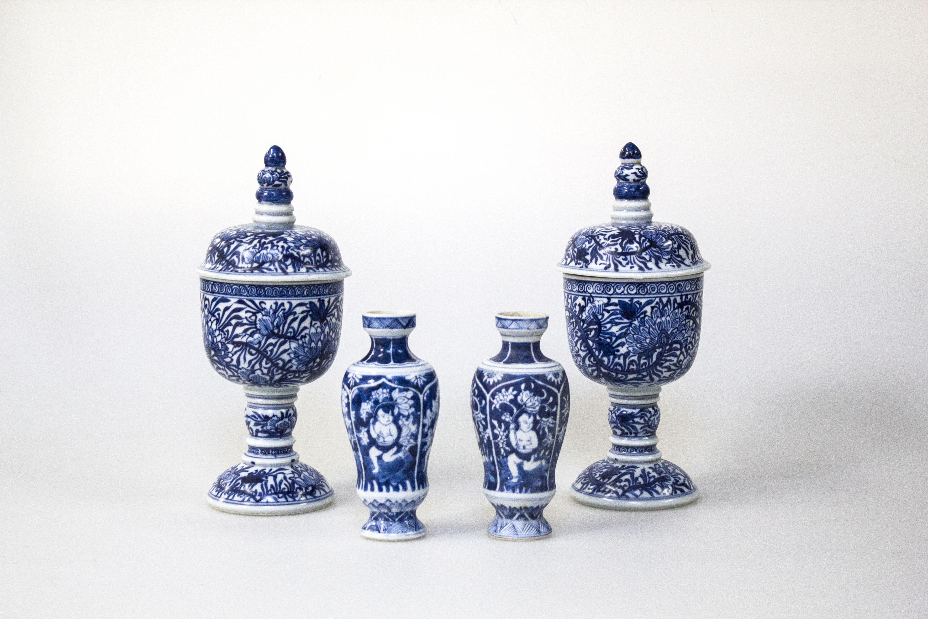 3435. Paire de coupes couvertes sur pied et deux vases balustres, Chine, XXe s