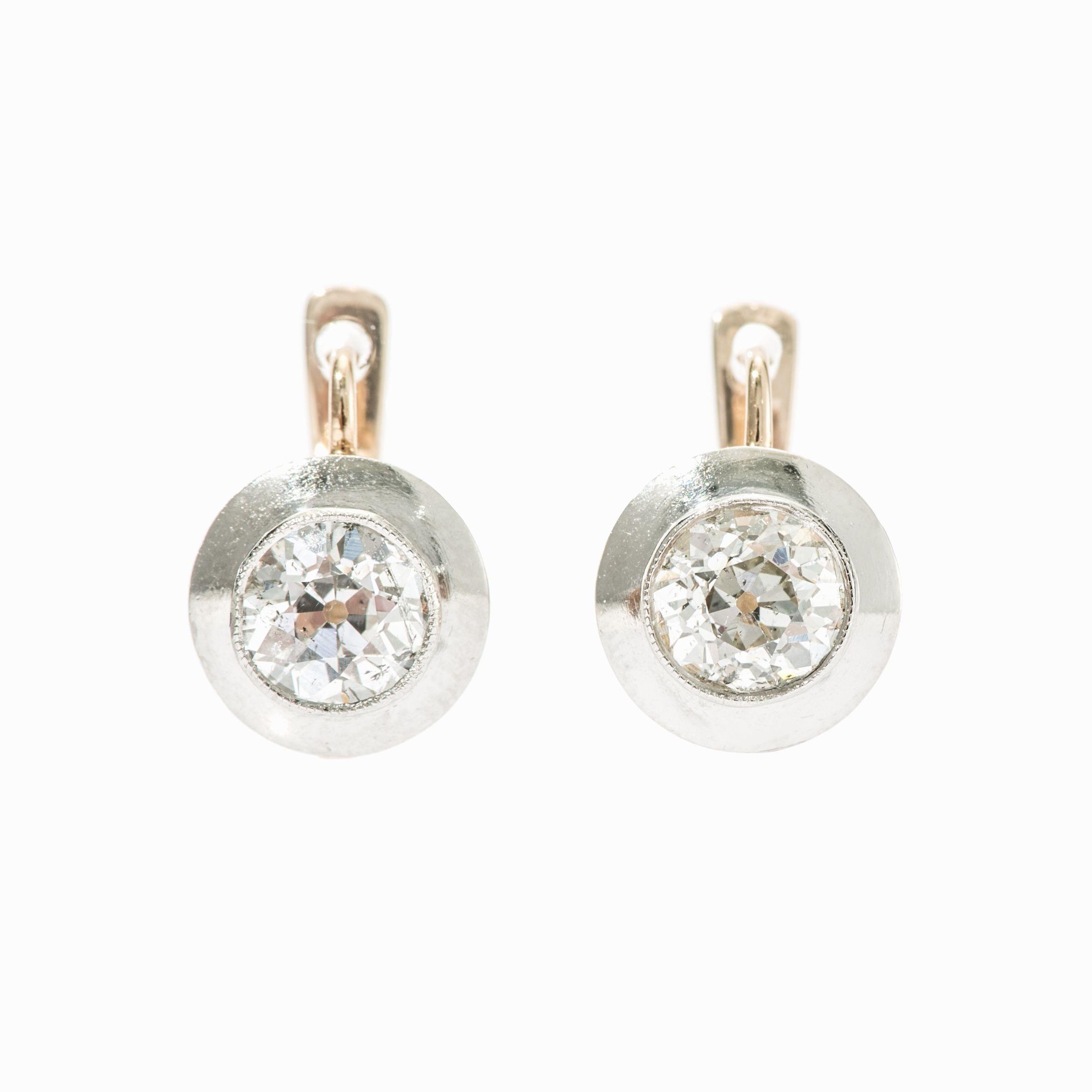 105. Paire de dormeuses serties de diamants demi taille brillant