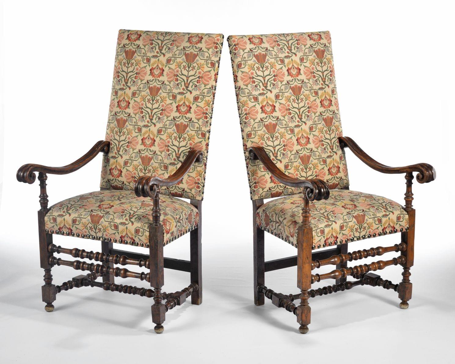 481. Paire de fauteuils à haut dossier d'époque Louis XIV