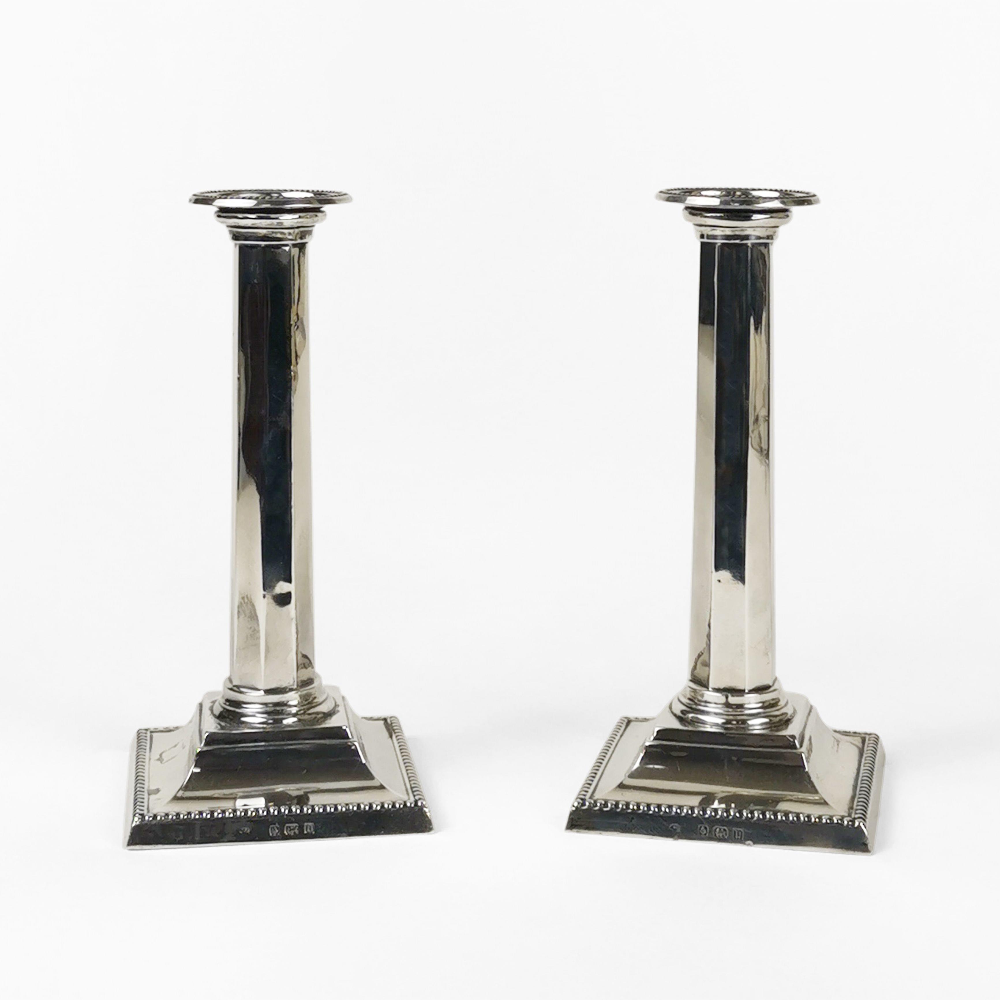 3852. Paire de flambeaux à fût octogonal et bordure de perlettes